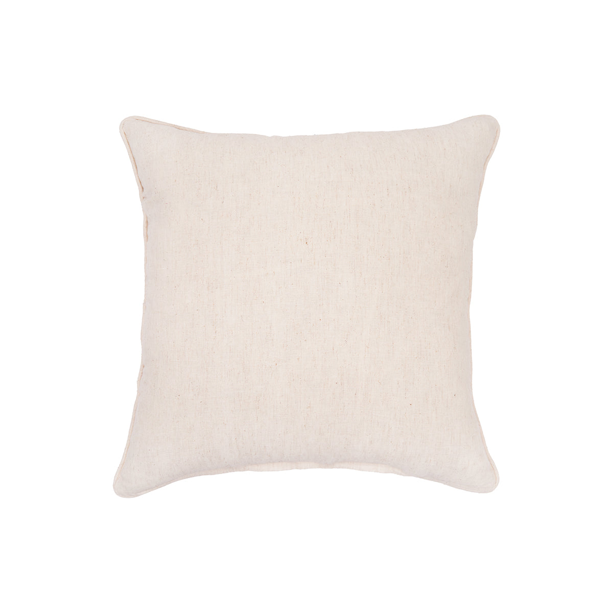 Decorated with a vertical array of daisy flowers boasting vivid yellow centers, delicate green foliage, and graceful white petals, this printed and embellished pillow captures a charming watercolor aesthetic. Set against a tranquil neutral backdrop, it adds a touch of serene elegance to any space.