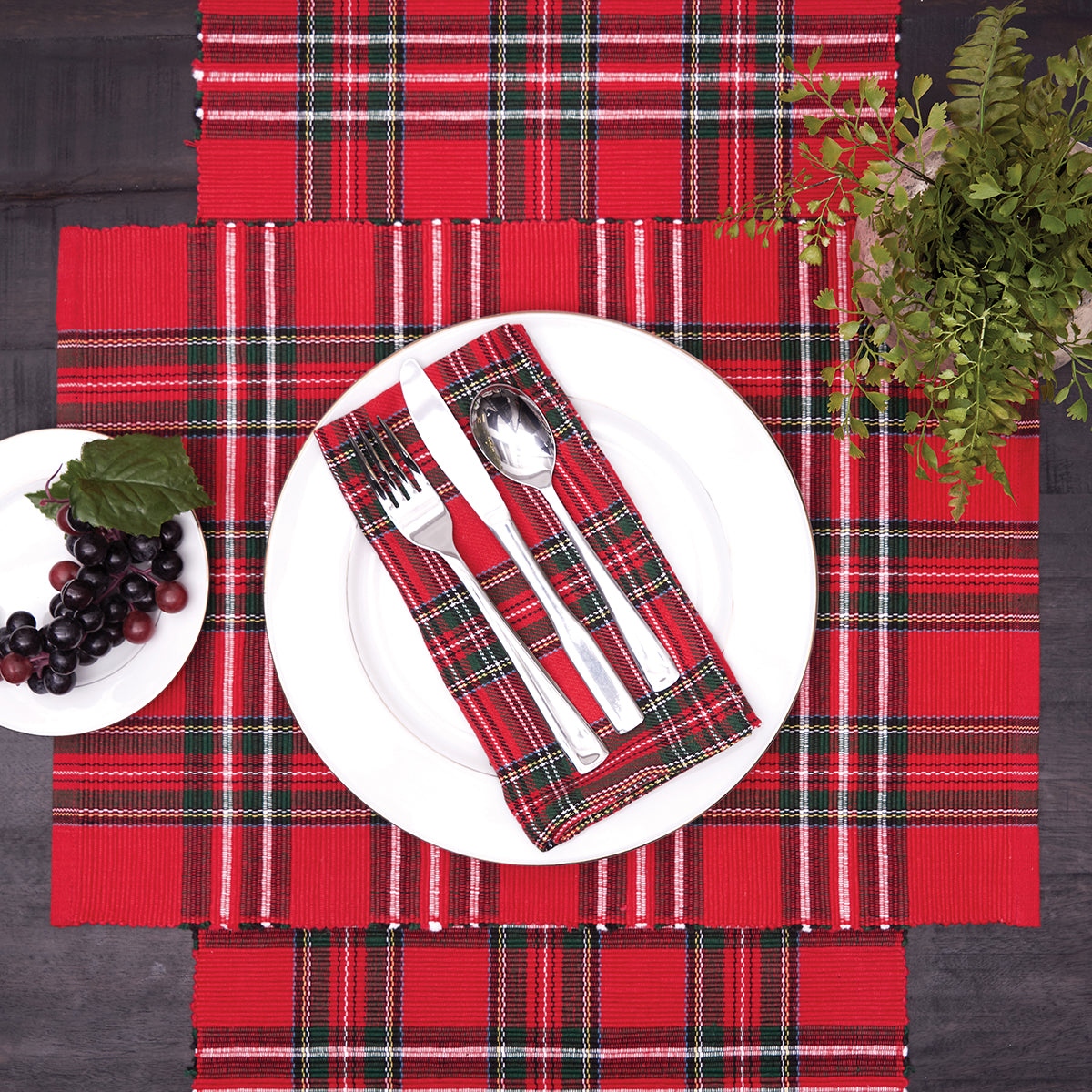Keep your home snug and warm with the Arlington Plaid tabletop collection. Traditional woven red plaid will give your favorite spaces a classic cozy style, and will help complete your lodge theme, your winter holiday , or your comfortable everyday look. Crafted of cotton and machine washable for easy care. Complete the look with the coordinating placemats, napkins and table runner or mix and match with your favorites for a new look. Love this look? Arlington Plaid is also available in our bedding collection and window treatments.