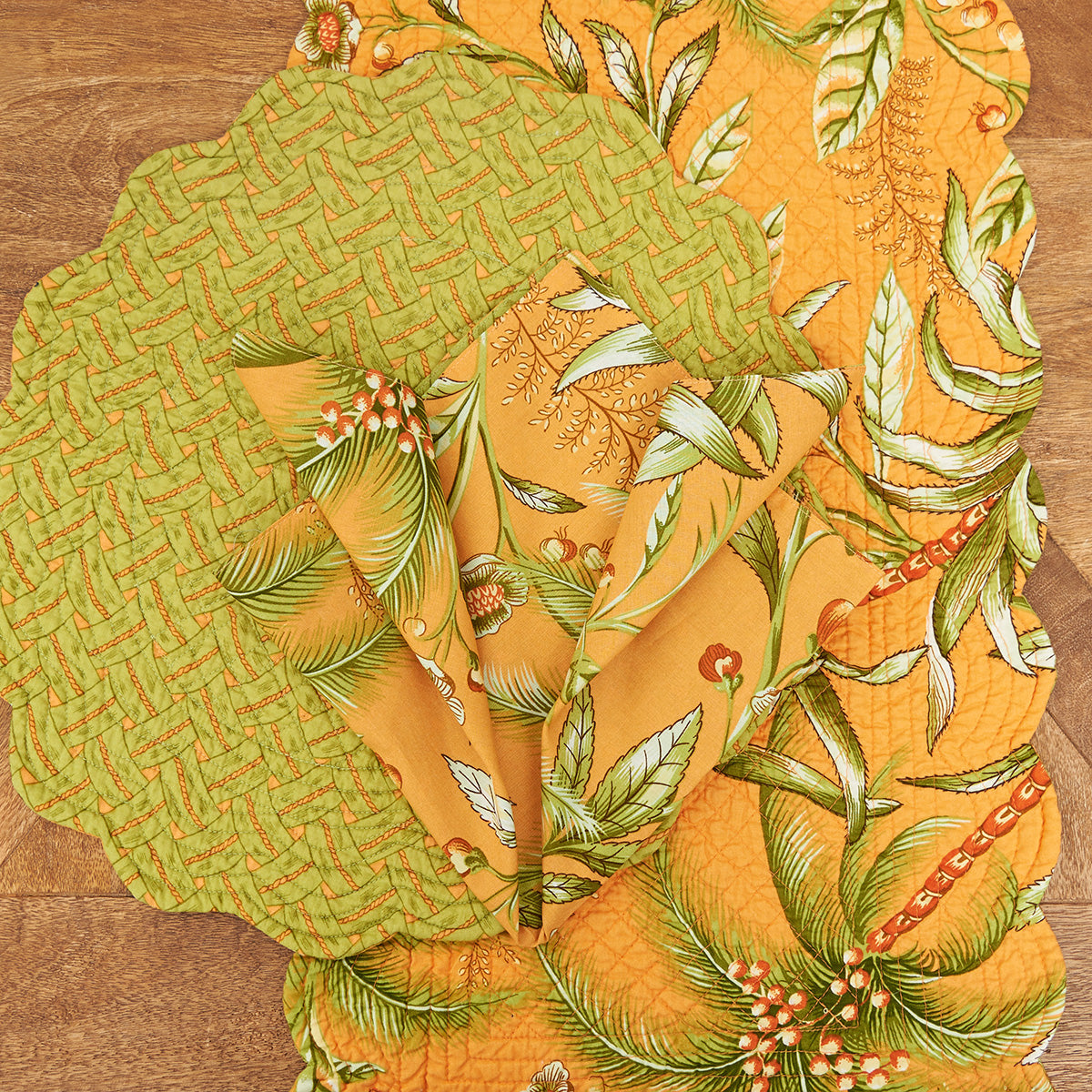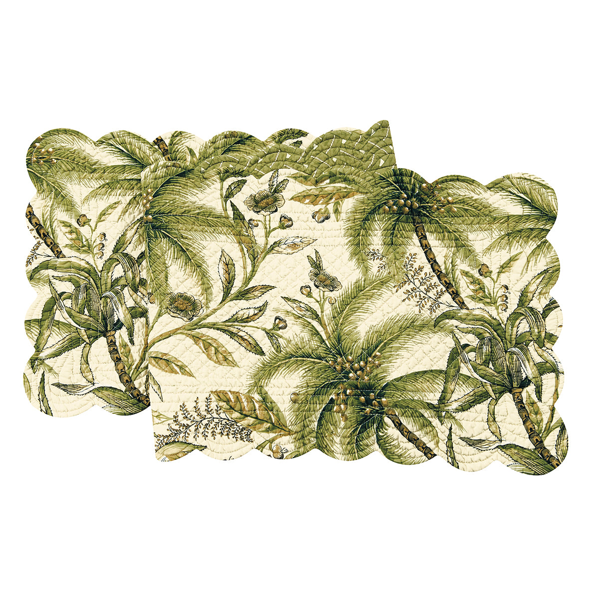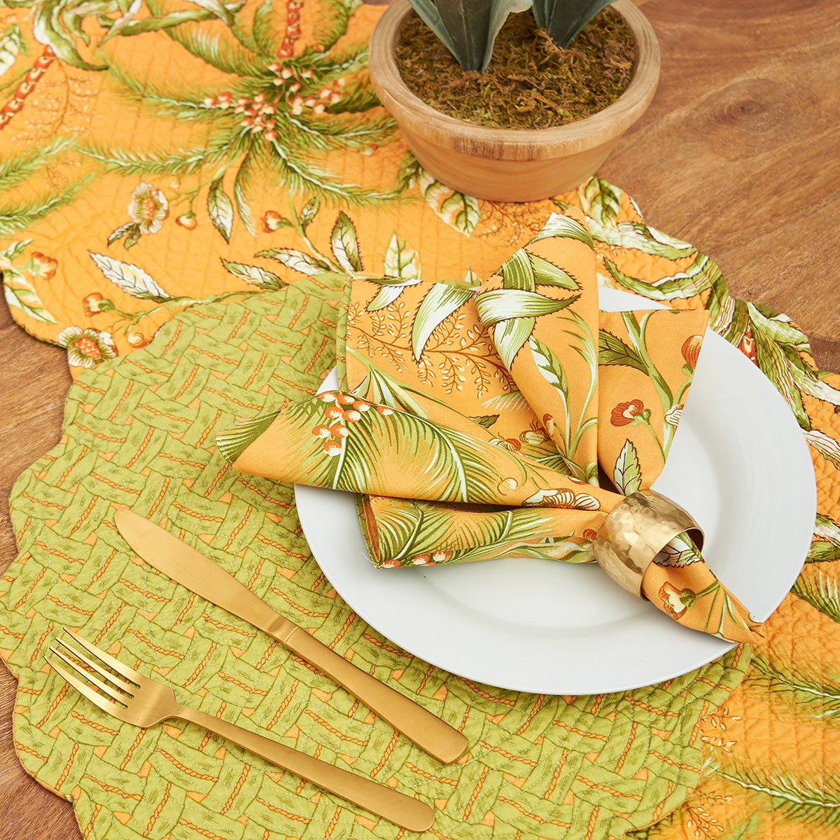 Dine among lazy palm trees with the Barbados Table Linen Collection. Designed in collaboration with WILLIAMSBURG, this cotton placemat features lush green palm trees atop an airy fountain blue ground. Reverse to a sandstone basketweave pattern for an alternate look. Style this napkin with its coordinating placemats and table runner to create a tropical oasis in the comfort of home.
