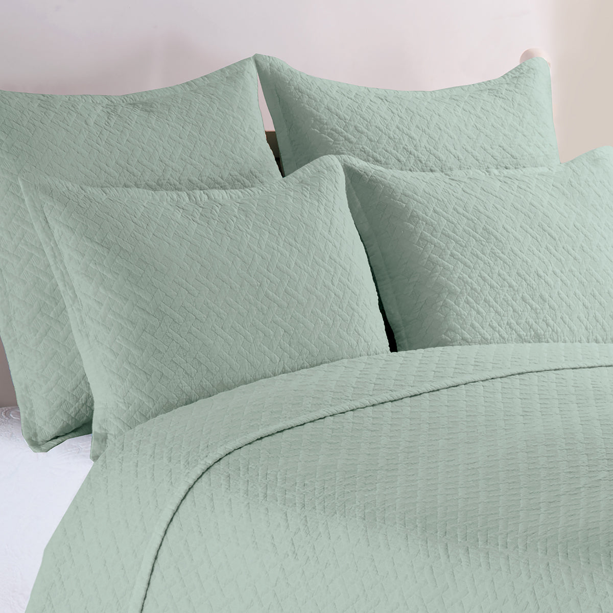 Create a restful retreat with the Basketweave quilt set. A subtle lattice pattern in a soothing colorways sets the tone for relaxing sleep and peaceful dreams, night after night. Crafted of cotton with a polyester fill for loftiness the Basketweave quilt set is machine washable for easy care. Available in Azul, Spa, White, Coral and Jadeite. Complete your casual bedroom update with coordinating euro shams available separately.