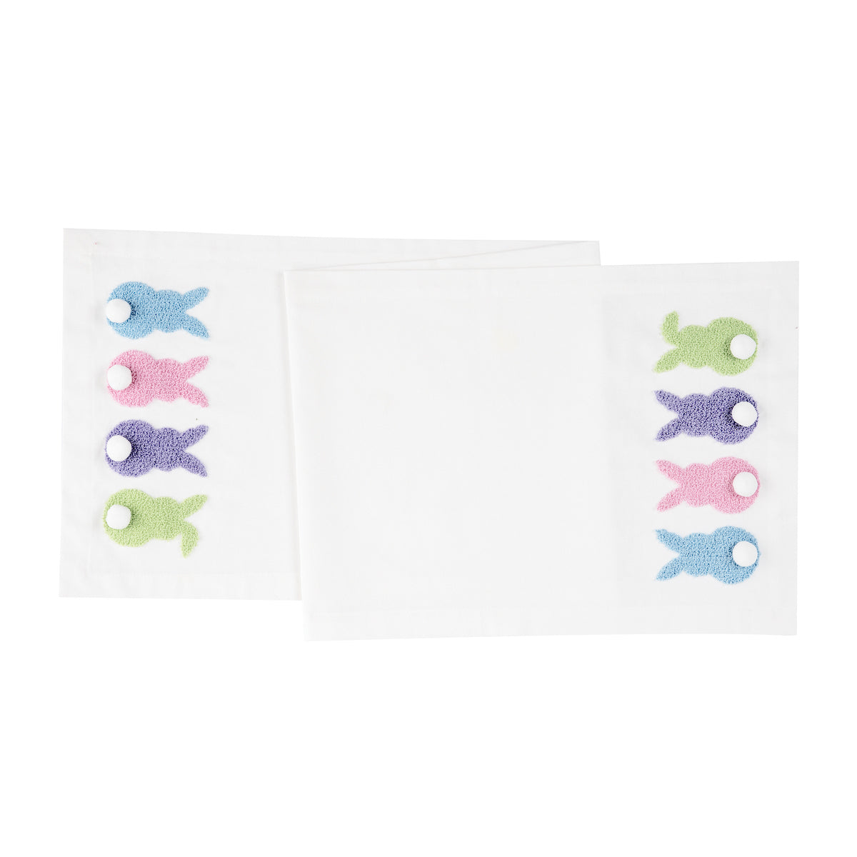 Hop into spring with the Bunny Bum collection. Bright pink, purple, green and blue tufted bunnies are nestled together on a beautiful white cloth that will add springtime charm to your dining experience. Crafted of cotton and machine washable for easy care, this table runner is sure to delight your guests.