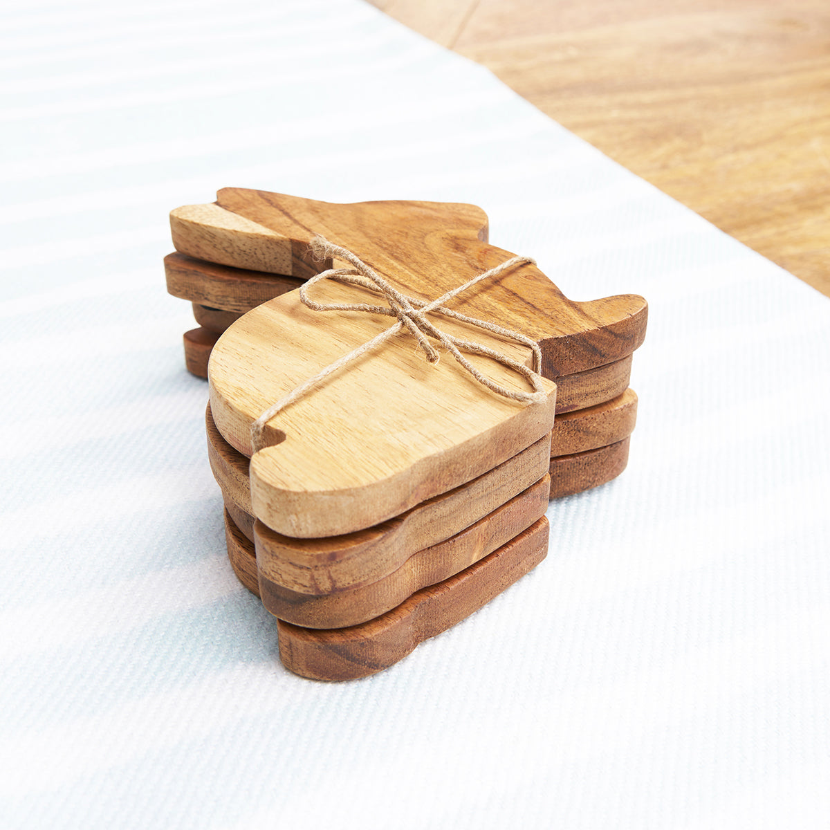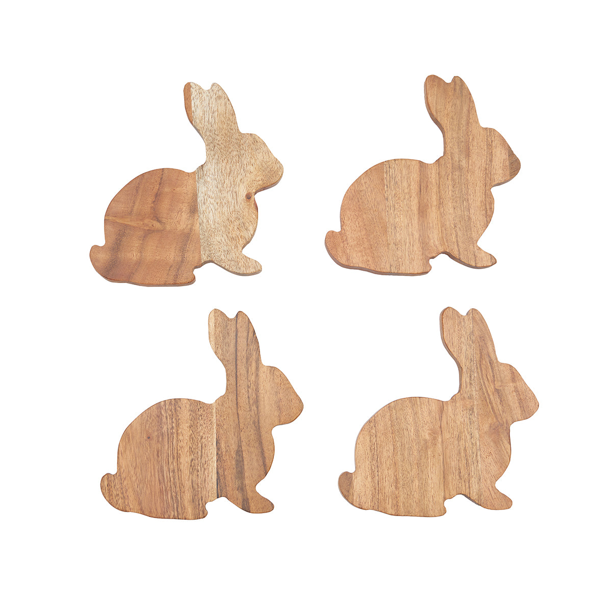 This charming set of four bunny-shaped coasters is crafted from rich acacia wood, adding a touch of whimsy and elegance to your tabletop. Each coaster features the natural beauty and unique grain of the wood, while the playful bunny shape brings a fun, seasonal flair to your home. Perfect for springtime gatherings, Easter celebrations, or as a thoughtful gift, this coaster set combines style with practicality, protecting your surfaces while enhancing your decor. Celebrate the season with these delightful, nature-inspired coasters.