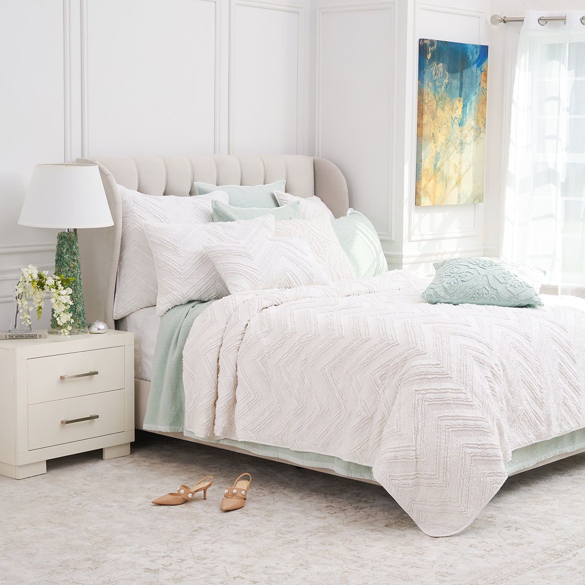 Elegant simplicity meets extraordinary detail with the Candlewick Dove collection. This 100% cotton bedding combines candlewick and pick stitch techniques to give an exclusive, updated look to a beloved chevron pattern that lends your space a touch of heartfelt nostalgia.