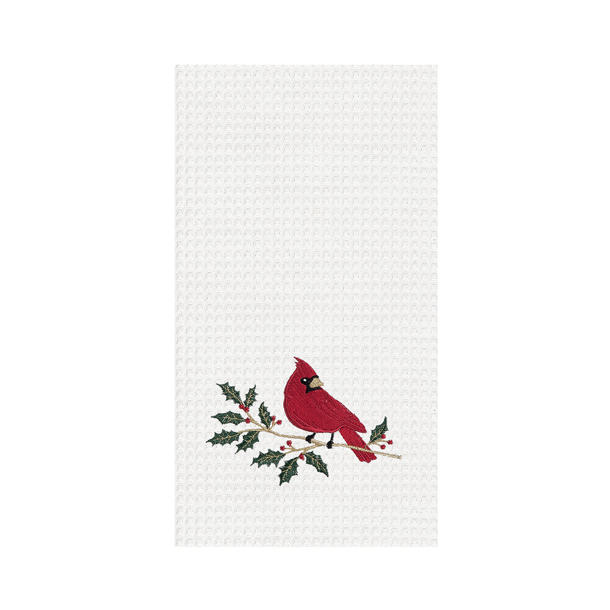Enjoy the sight of this Cardinal Holly Embroidered Waffle Weave Towel. Made from cotton fabric, the cheerful cardinal will add some seriously festive cheer to your holiday decor.