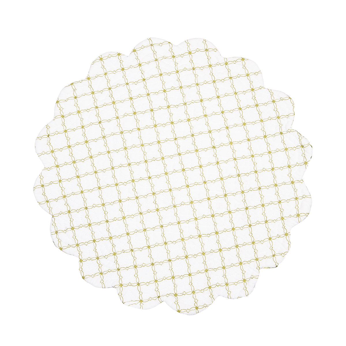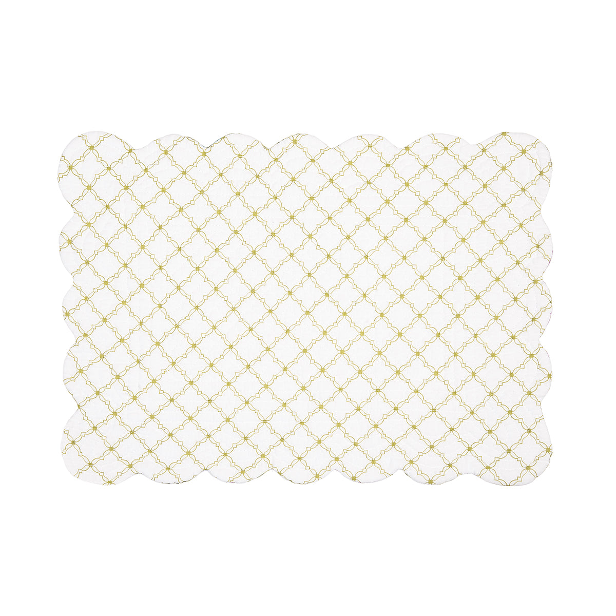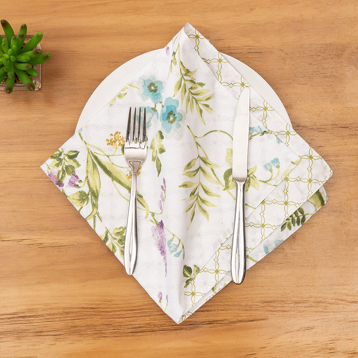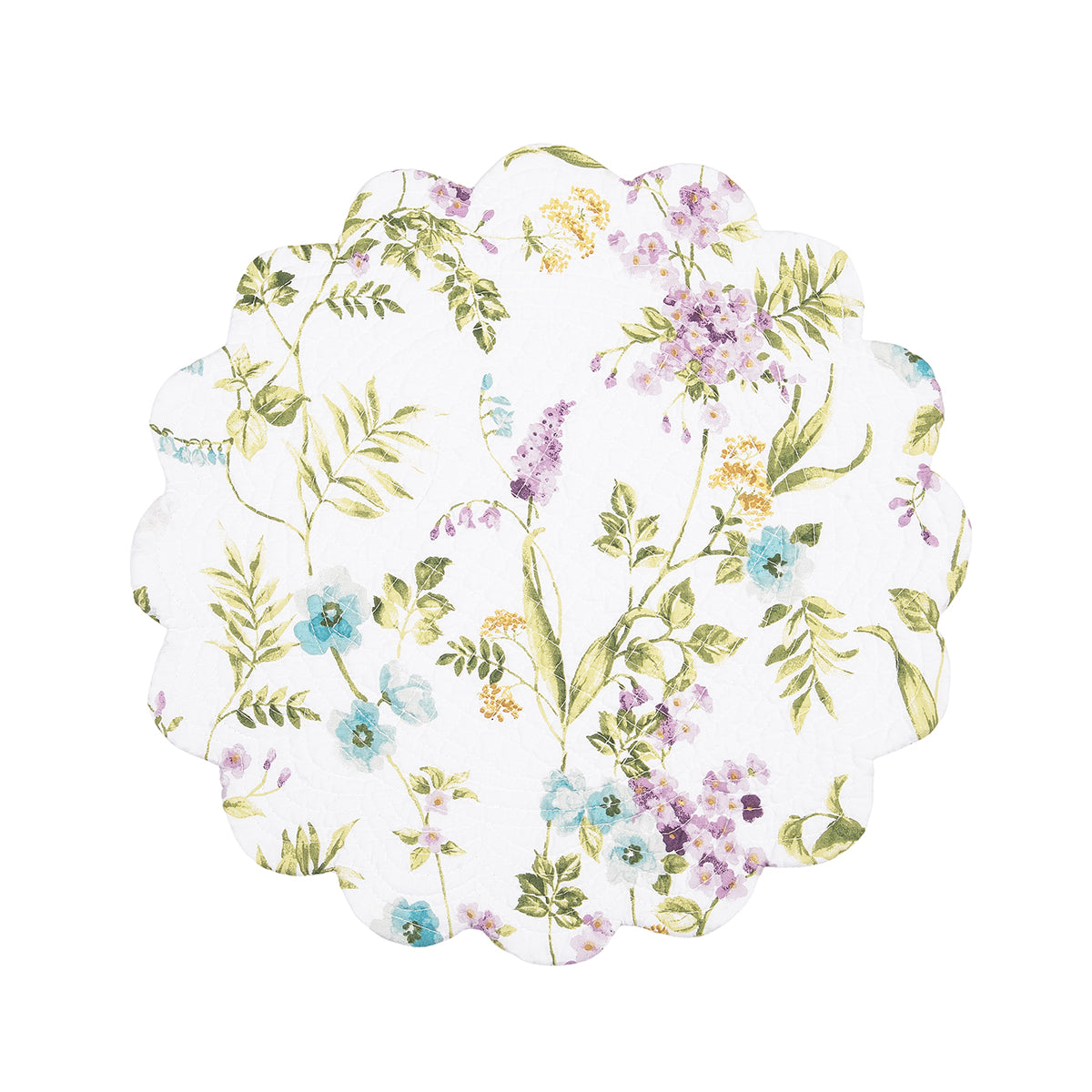 Embrace the beauty of spring all year round with the Carley quilted table linen collection and matching reversible napkin. The painterly flowers in a stunning array of blue, purple, and yellow on flourishing green stems evoke a sense of rejuvenation. For more styling options, these table linens reverse to a simple, yet charming yellow rosebud-style trellis pattern on a white background for more styling options. Love this look? Carley is also available as a bedding collection.