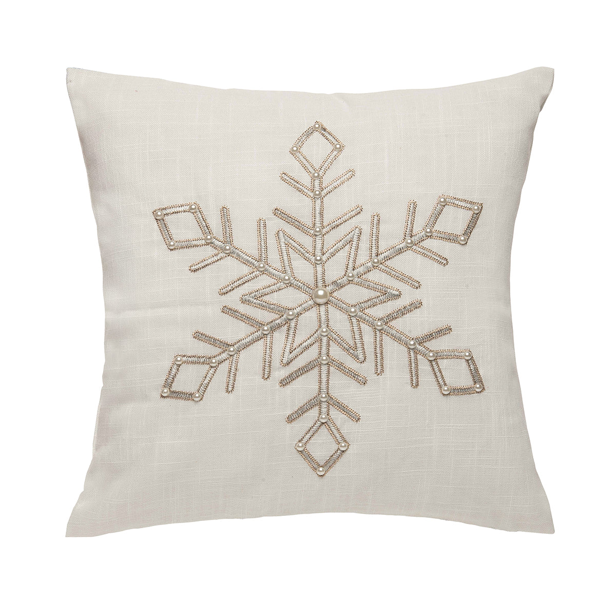 Add a touch of winter elegance with the Champagne Snowflake Pillow. Its intricate embroidered snowflake design brings a frosty charm to holiday decor.