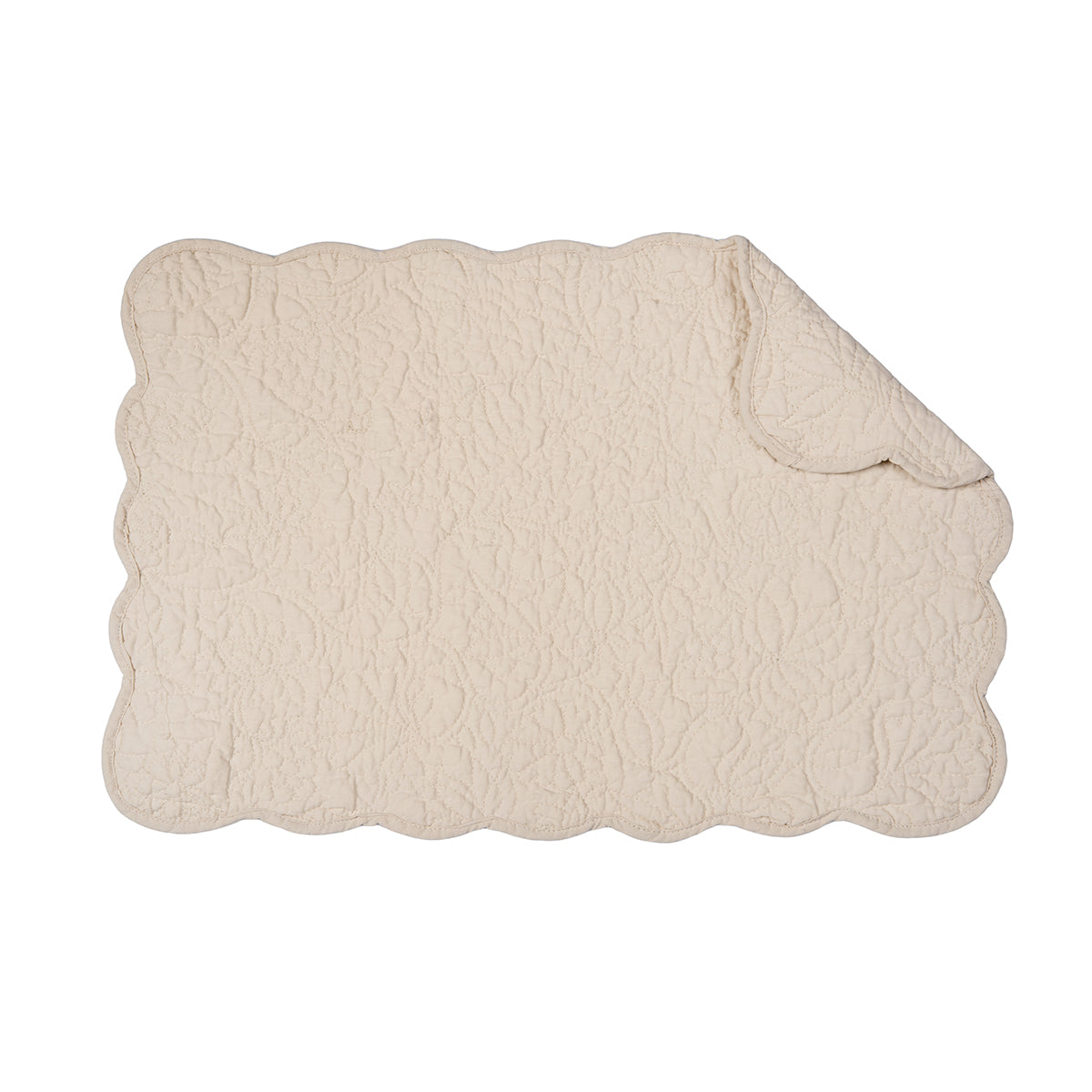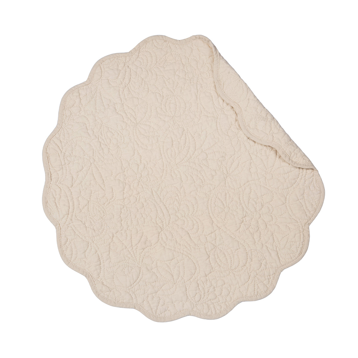 Quilted materials were as popular in the 18th century as they are today, crafted from fabrics such as cotton, wool, and linen. Inspired by an original 1791 quilt from the Colonial Williamsburg archives, the Christiana collection’s graceful and feminine design beautifully captures the charm and artistry of early American craftsmanship. This graceful, feminine design features an intricate trailing floral and vine stitching pattern, adding depth and texture to these timeless table linens. Available in five distinctive colors-Breeze, Honey, Khaki, Sweet Pea, and White-these versatile pieces can be layered for a sophisticated, curated look or styled on their own for a simple yet elegant display.