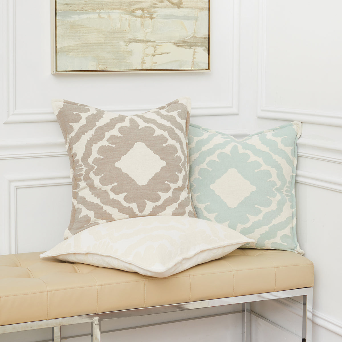 Let Cleo inspire your next look. With an ikat-inspired design hand woven with quality 100% cotton and chenille to provide extra texture, this unique pillow creates a sophisticated focal point.