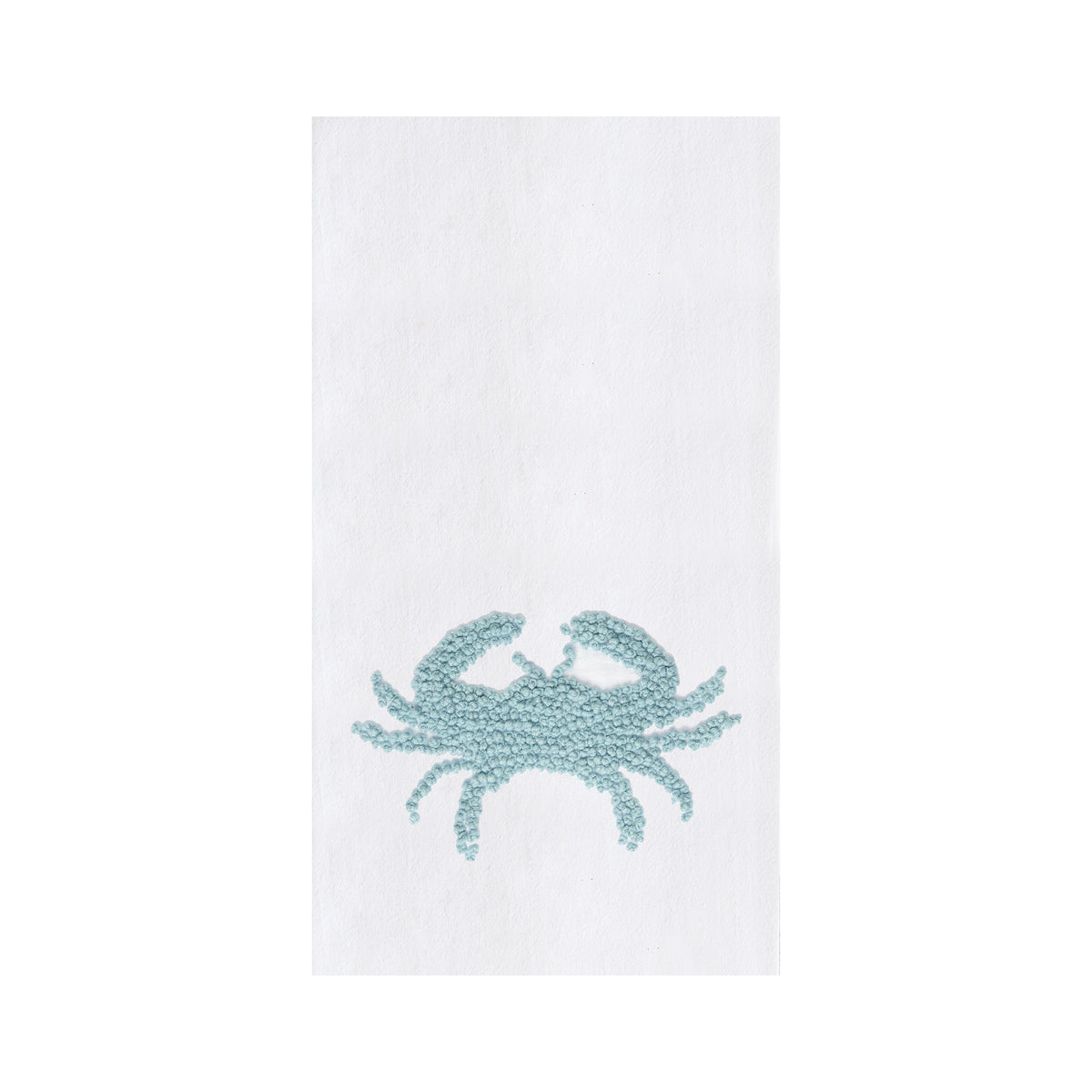 This cotton flour sack towel features a blue crab design in the unique texture of French knot embroidery, perfect to keep your home bright and sunny all summer long.