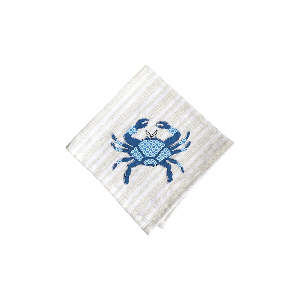 Featuring a whimsical blue crab against a background oftan-gray stripes, the Crab StripeNapkin layers perfectly with other table linens in the By the Sea collection. This collection of table linens featuring, artwork by Paula Joerling, is made to mix and match, you choose your favorite icons and set a fun coastal table.