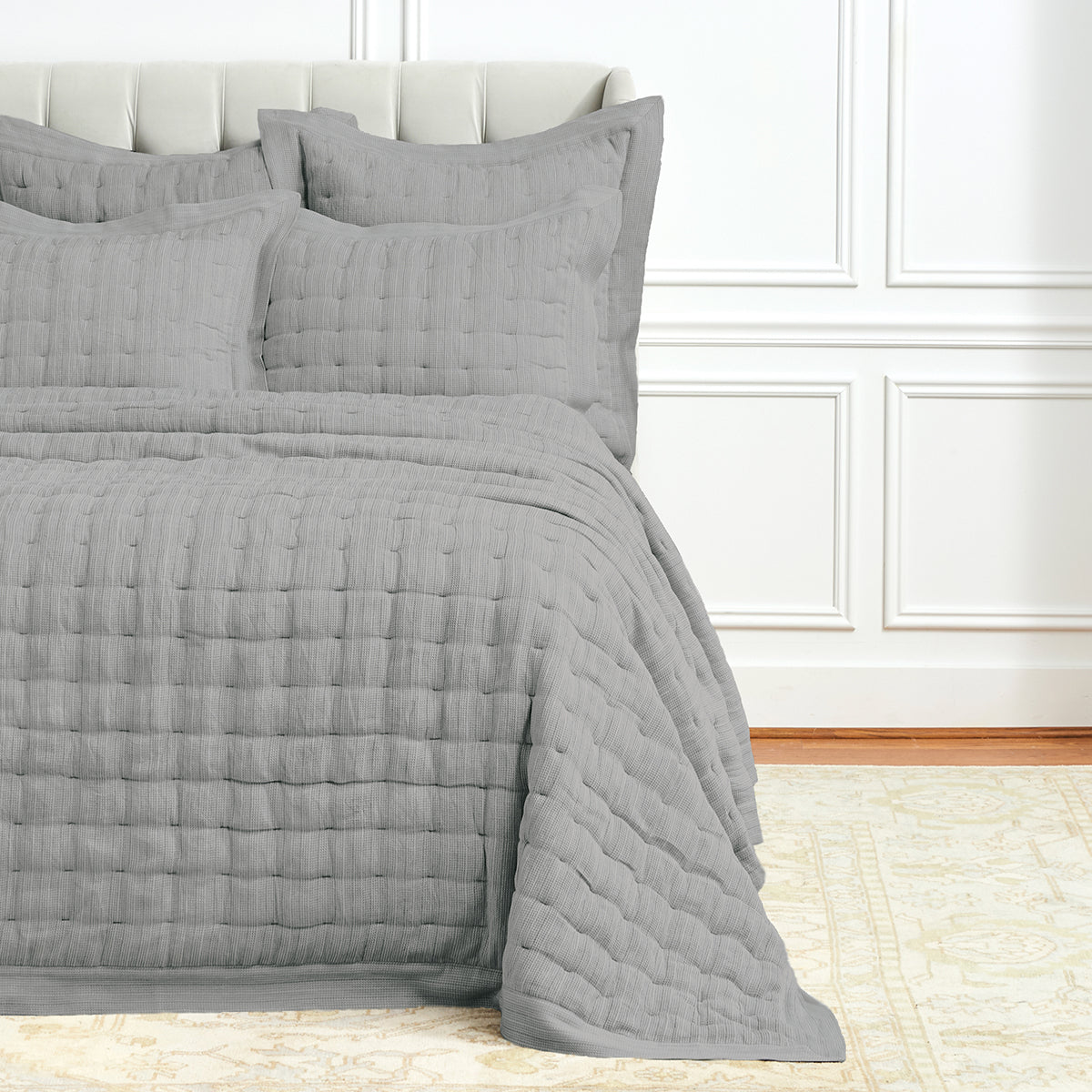 The Danette collection showcases textured vertical stripes and crisp tailored style converging in a harmonious blend of comfort and sophistication. Crafted from a luxurious cotton and rayon blend, this collection offers a unique and inviting touch that transforms your bed into a statement of style. Layer different looks on the Fog and Shale quilts or create a cohesive ensemble by pairing with the matching shams. The versatility of this collection allows you to express your personal style and create a customized bed that suits your taste.