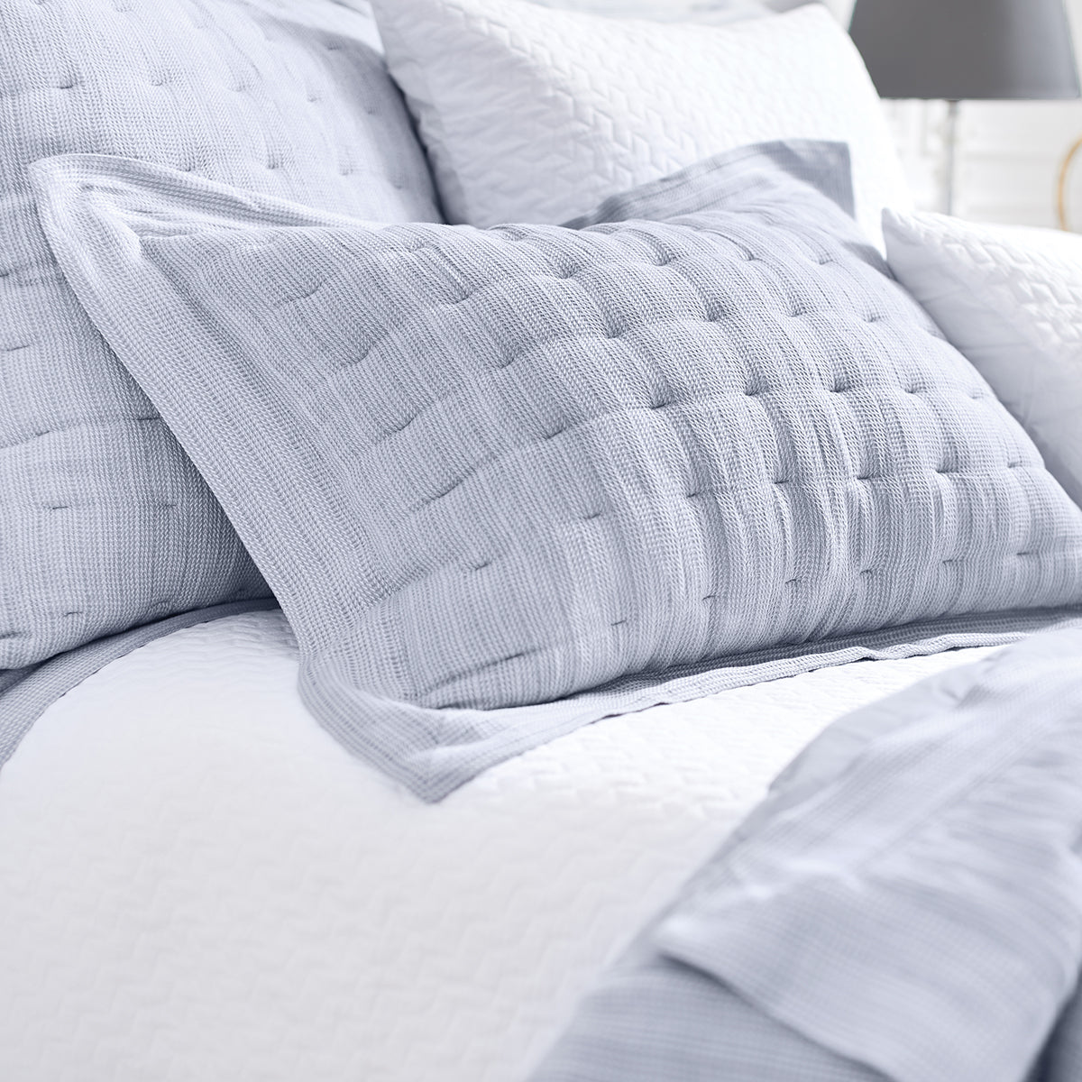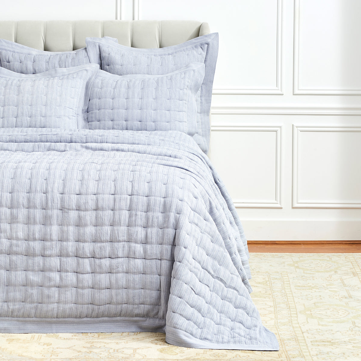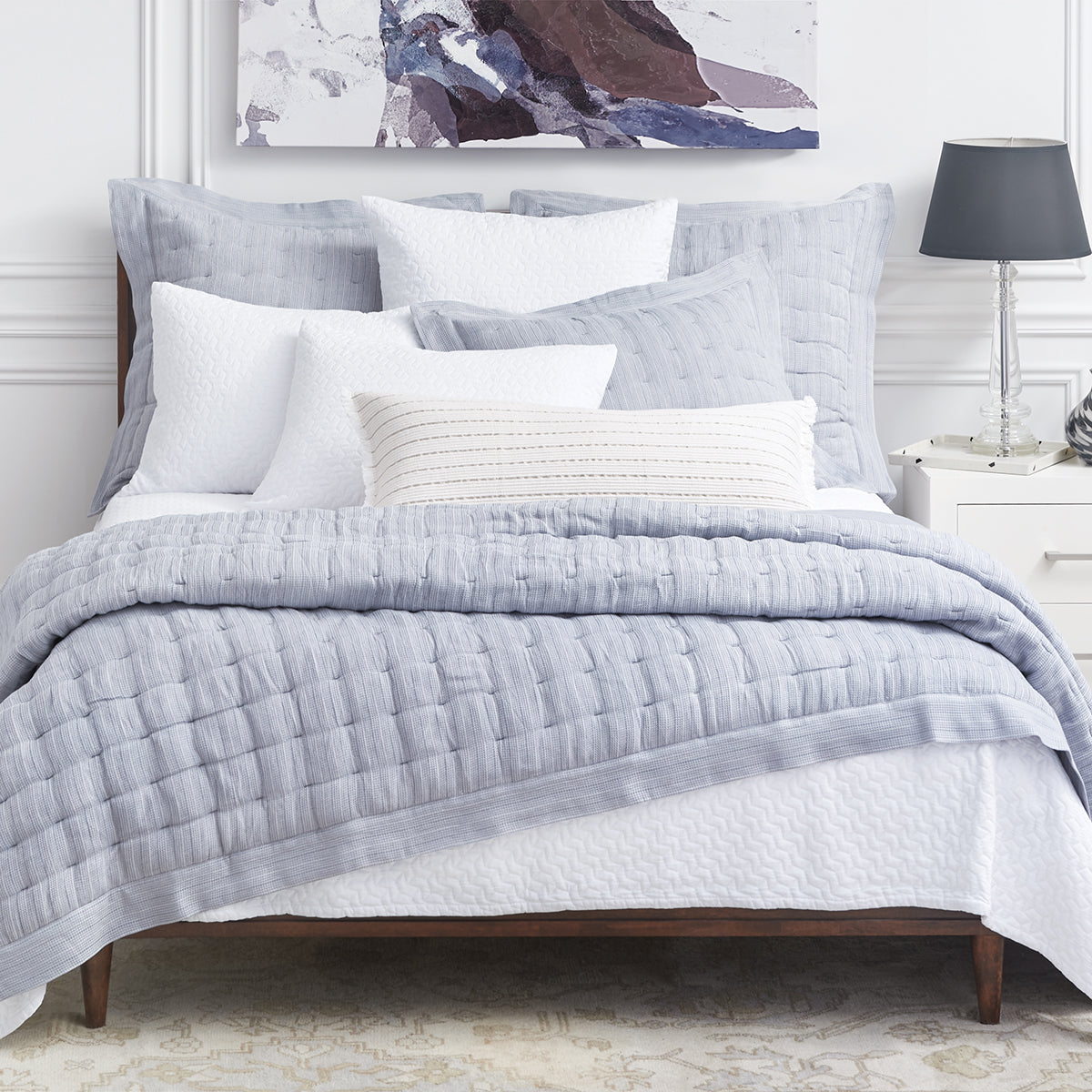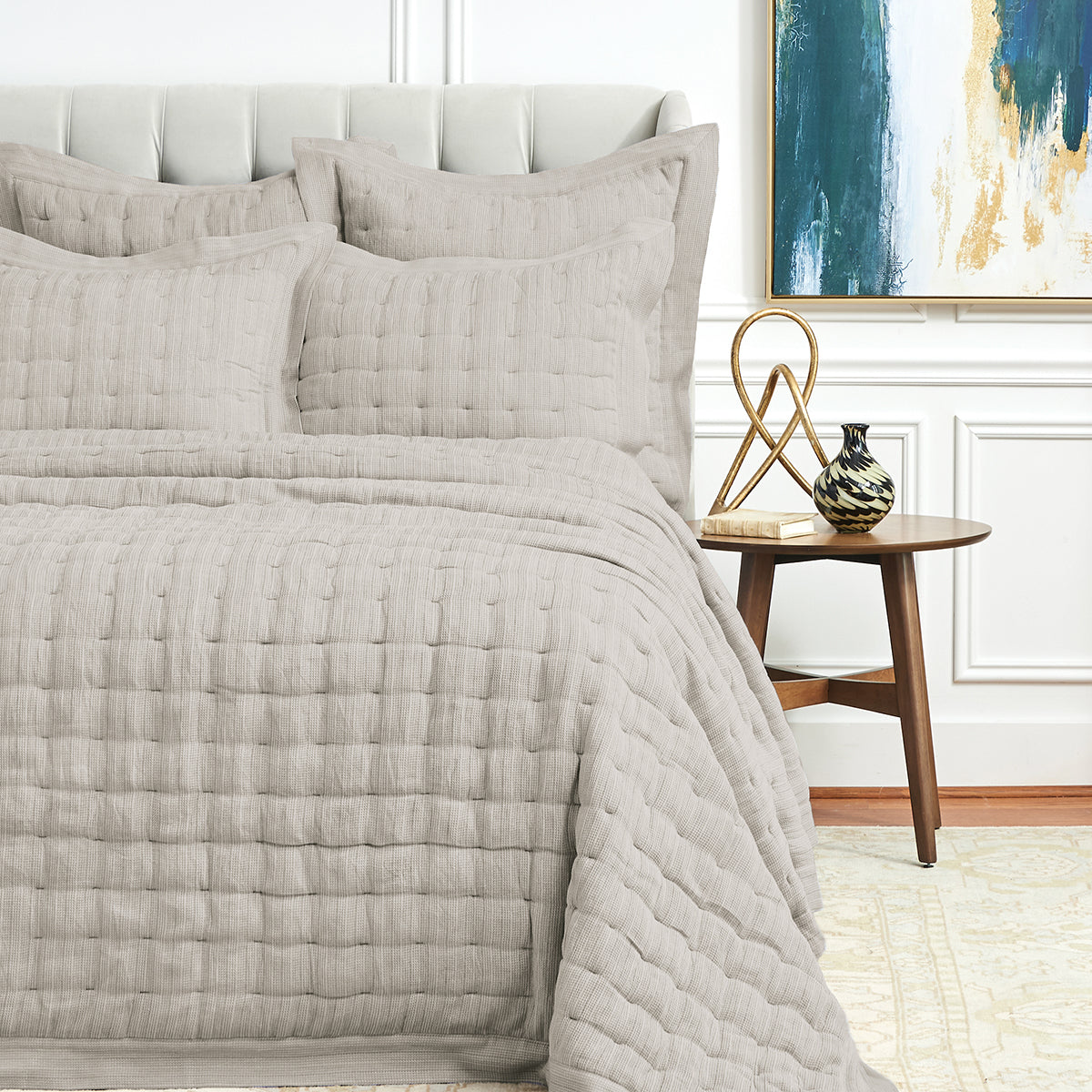 The Danette collection showcases textured vertical stripes and crisp tailored style converging in a harmonious blend of comfort and sophistication. Crafted from a luxurious cotton and rayon blend, this collection offers a unique and inviting touch that transforms your bed into a statement of style. Layer different looks on the Fog and Shale quilts or create a cohesive ensemble by pairing with the matching shams. The versatility of this collection allows you to express your personal style and create a customized bed that suits your taste.