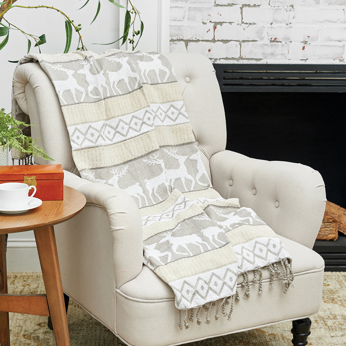 Whether you're curling up with a book or adding a decorative layer to your home, our Deer Throw is a stylish and functional addition to your cozy sanctuary. Elevate your comfort and style with this nature-inspired piece that seamlessly blends warmth and aesthetic appeal.