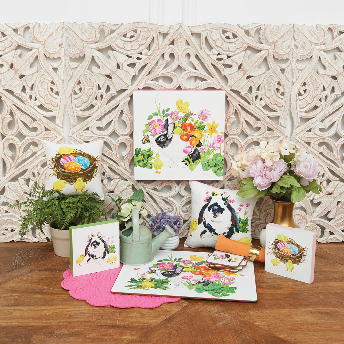 With sweet Easter designs by artist Martha Collins, the Chicks and Nest Pillowwas made for sunny days and garden egg hunts. From gathering family together to filling gift baskets, these decorative coasters bring joy to all your favorite spring traditions.