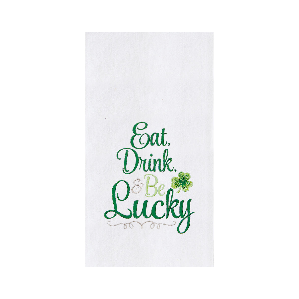 Instructions for a great St. Patricks Day: Eat, Drink & Be Lucky! Give it as a gift or use this embroidered flour sack towel to tidy up the kitchen after making your favorite springtime treats.