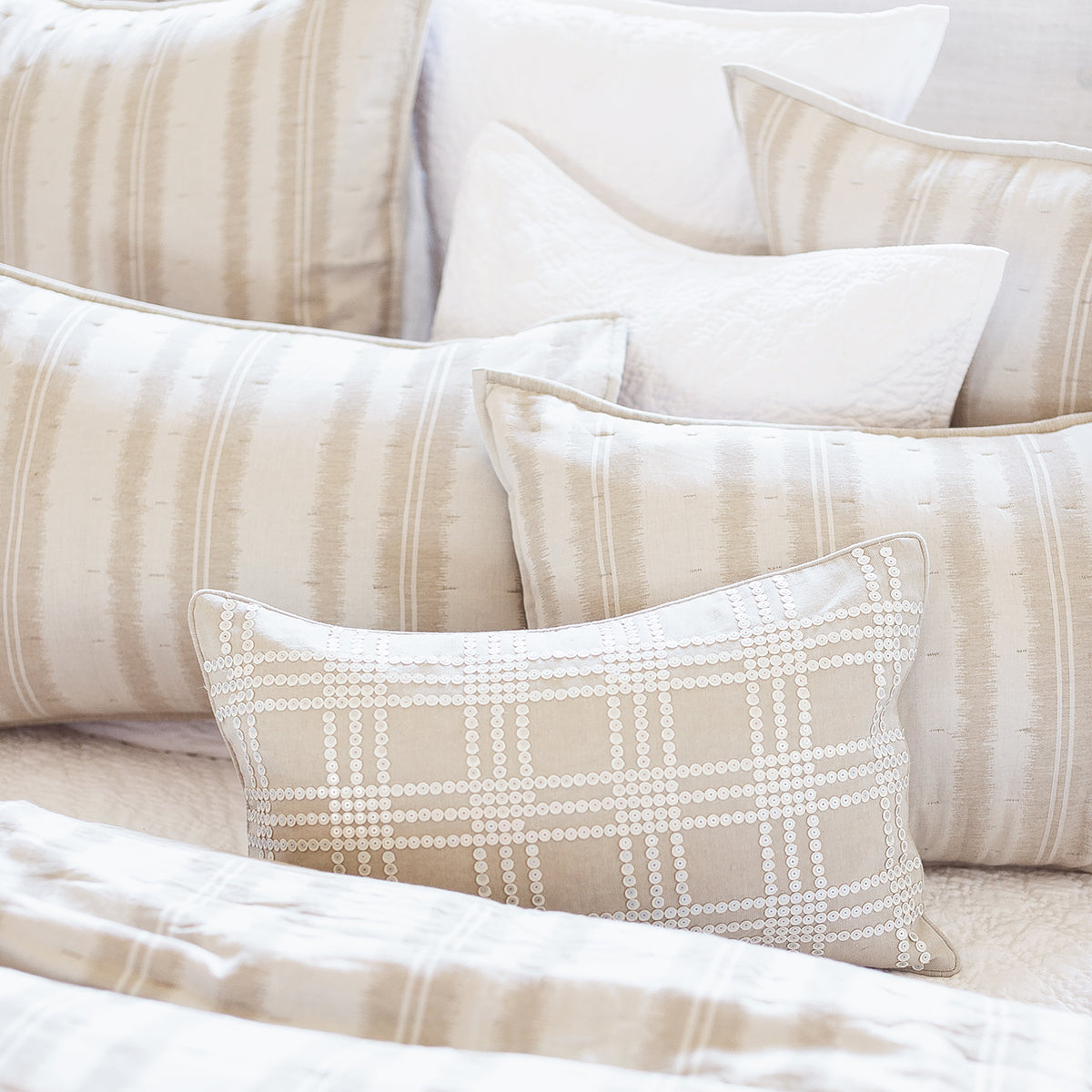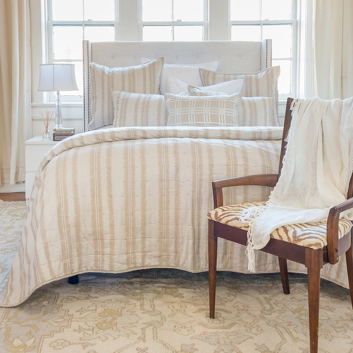 Understated luminescence. The Farren bedding collection is a jacquard weave, crafted of fiber-dyed cotton, lending a luxurious sheen and soft hand to a refined aesthetic. Made of 100% cotton with a refined cotton fill and washed for added luxury, this quilt may inspire a little wanderlust when added to your decor.