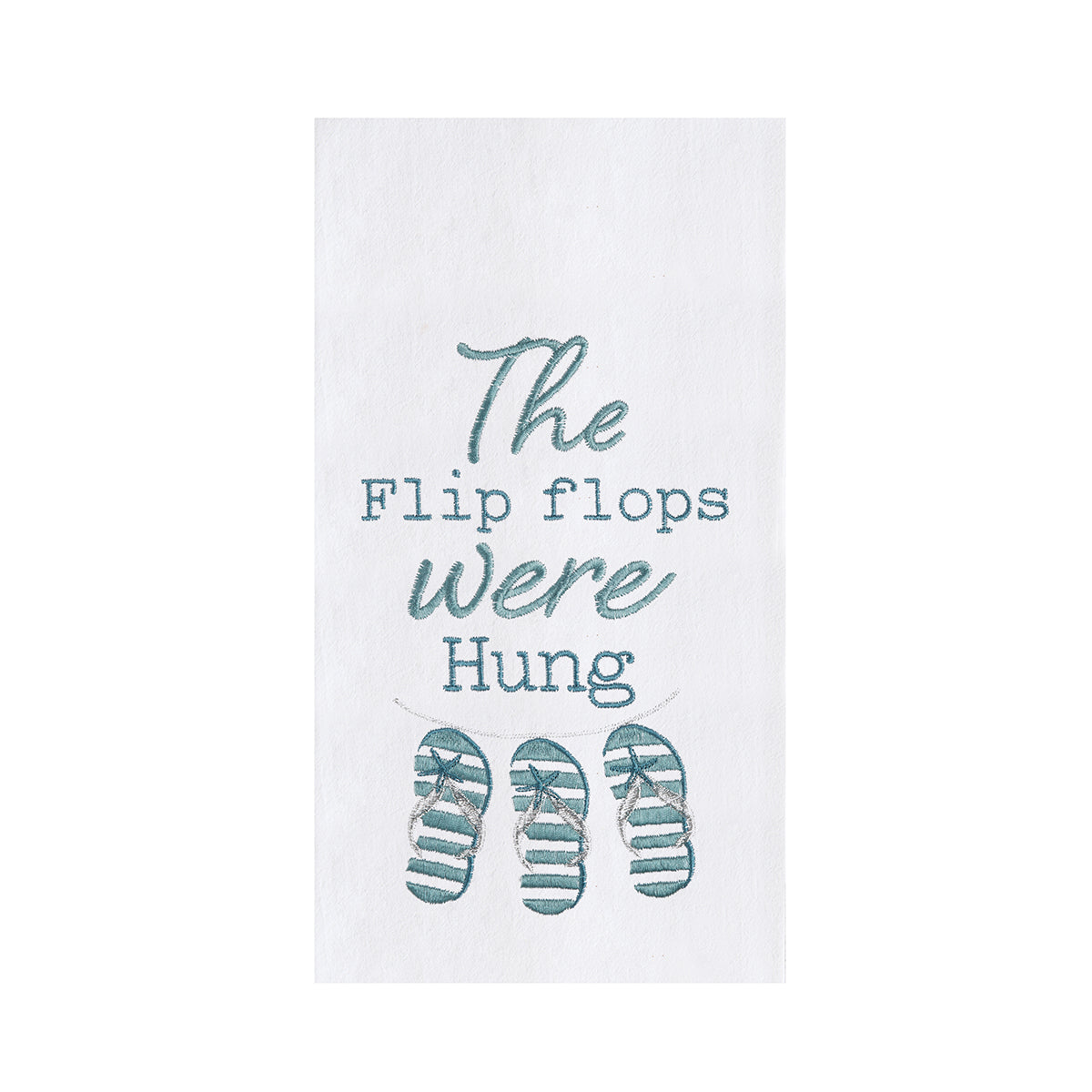 Deliver Christmas in a coastal-style this season with the Flip Flops Were Hung Flour Sack Kitchen Towel. Hang this charming cotton towel in the kitchen and flip for joy every time you see the row of dangling flip flops.