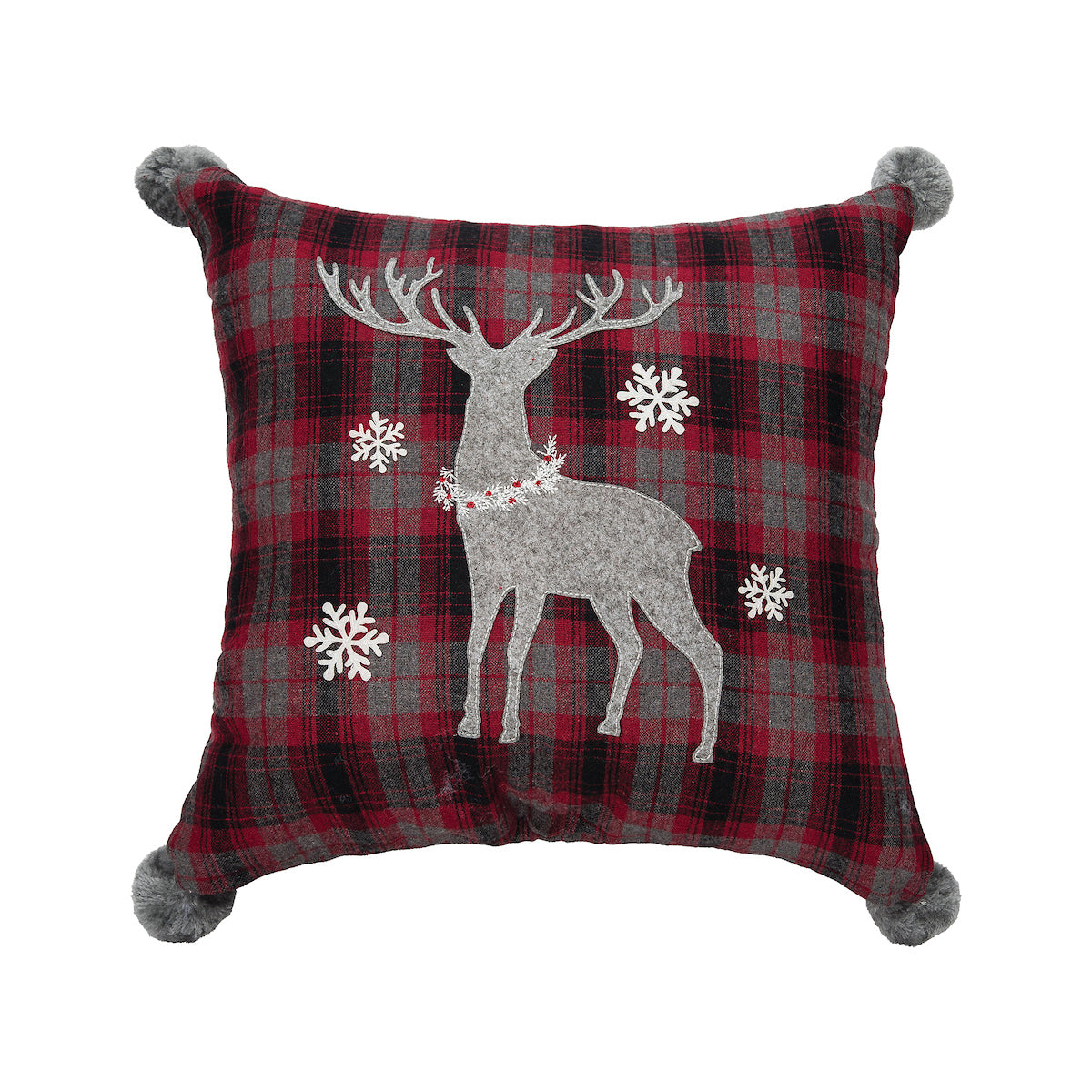 Bring a touch of rustic charm to your holiday home with the Frosty Deer Embellished Pillow. With a woodland deer against a plaid background, this pillow will add warmth to any room of your home. Style with a plaid tree skirt and stockingsto create a snug Christmas lodge feel!