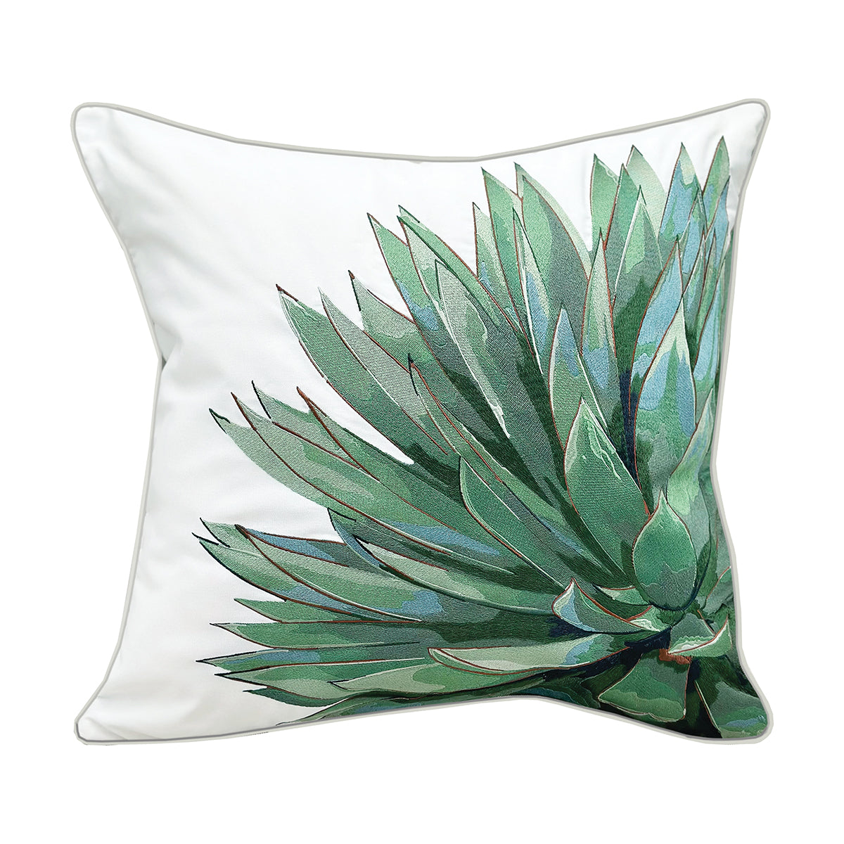 Bring a touch of desert-inspired charm to home decor with this pillow featuring a blue-green agave plant. Adorned with lush green agave leaves, this pillow adds a refreshing burst of greenery to any indoor or outdoor setting.