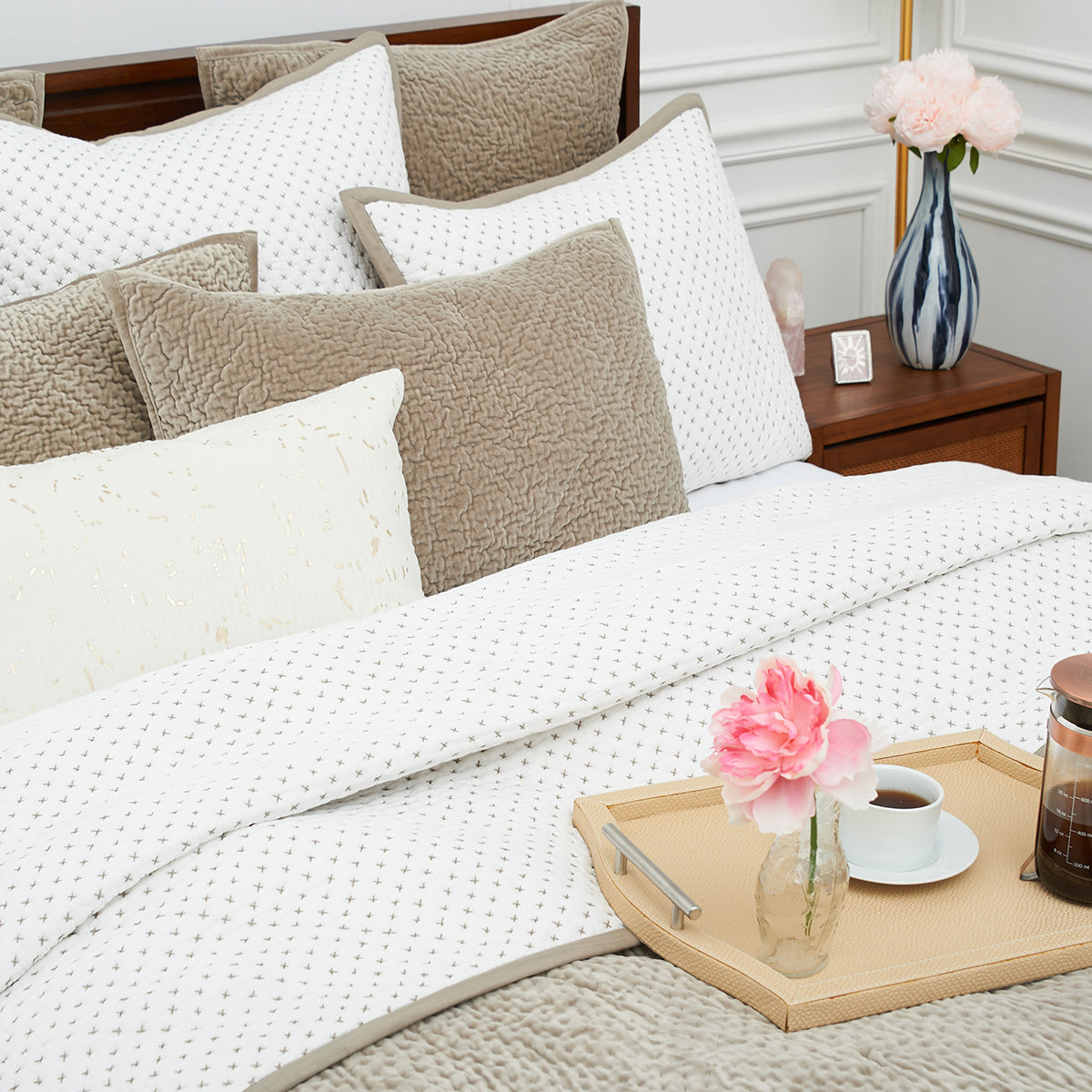The Hanima collection features a delicate touch of artisanal expertise, as skilled hands meticulously craft each piece with precision and care. The classic hand-stitched details add a touch of sophistication, creating a sense of opulence that transforms your bed into a statement of refined luxury. Made from cotton voile for a feather-light and breathable feeling, ensuring a restful night’s sleep.
