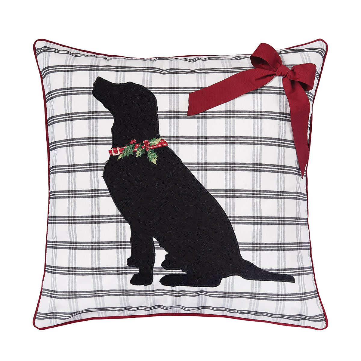 Celebrate the season with this charming Holiday Black Lab Indoor Outdoor Pillow. Set against a cozy grey and white plaid background, this delightful pillow is trimmed in festive holiday red. At its center, a lovable black lab sports a holly berry and leaf collar, adding a playful touch to Christmas decor. Perfect for both indoor and outdoor settings, this pillow combines festive cheer with durable design, making it an ideal accent for holiday gatherings and winter celebrations.