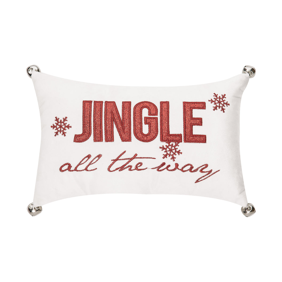 The Jingle All the Way Pillow will surely get you into the festive spirit. This pillow features the famous Christmas lyric embroidered in flashy red thread. Trimmed with real jingle bells, this festive accent adds a touch of holiday joy to your space.