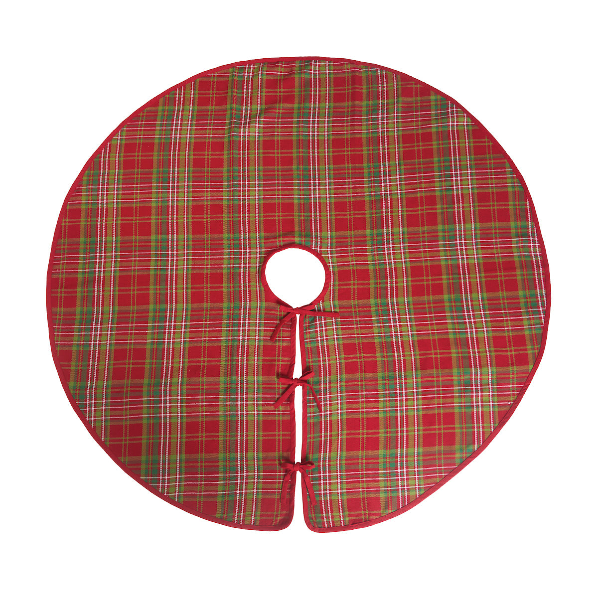 Transform your home into a cozy retreat with the Jonah Plaid tree skirt. Featuring a classic red and green plaid design, this pattern is perfect to create a winter lodge theme or a traditional Christmas look. Finished with a festive red fabric border and secured with tie closures. Crafted of 100-percent cotton.