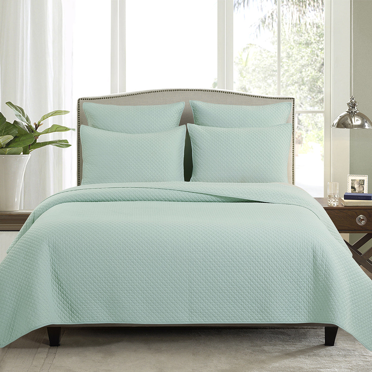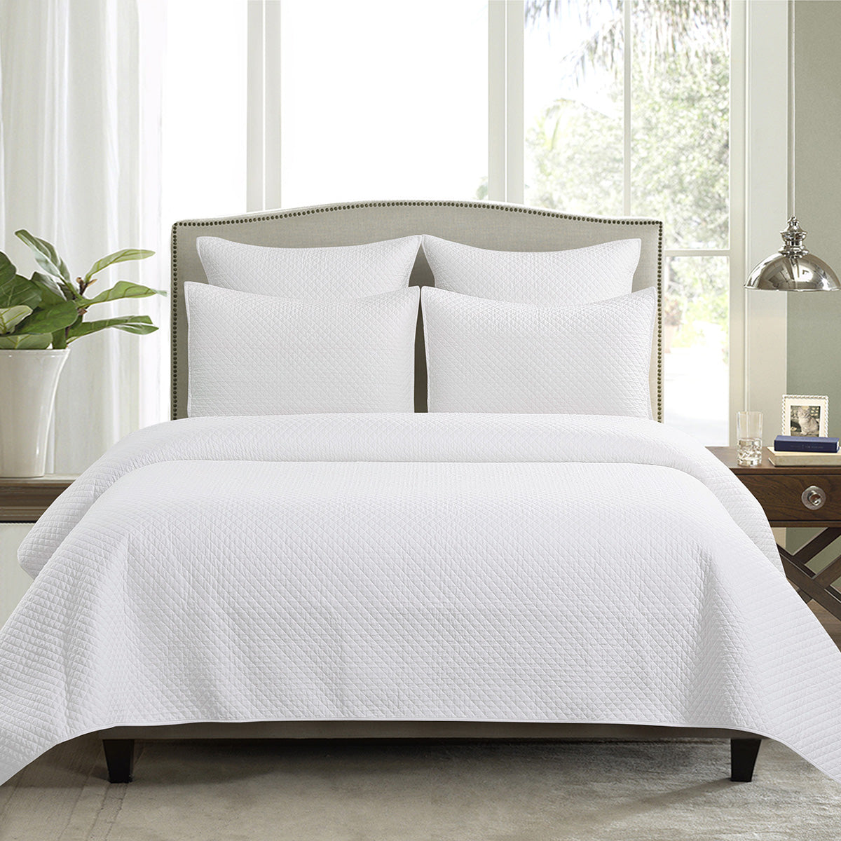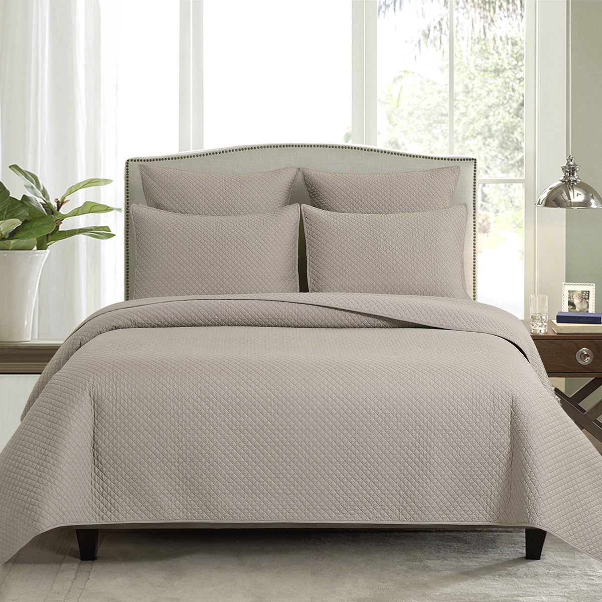 The Kya quilt set is luxuriously oversized and reversible. It features a 100% cotton cover with a poly-cotton blend filling, and the rosebud stitching adds texture for a uniquely beautiful look and feel. Experience ultimate comfort with this set.