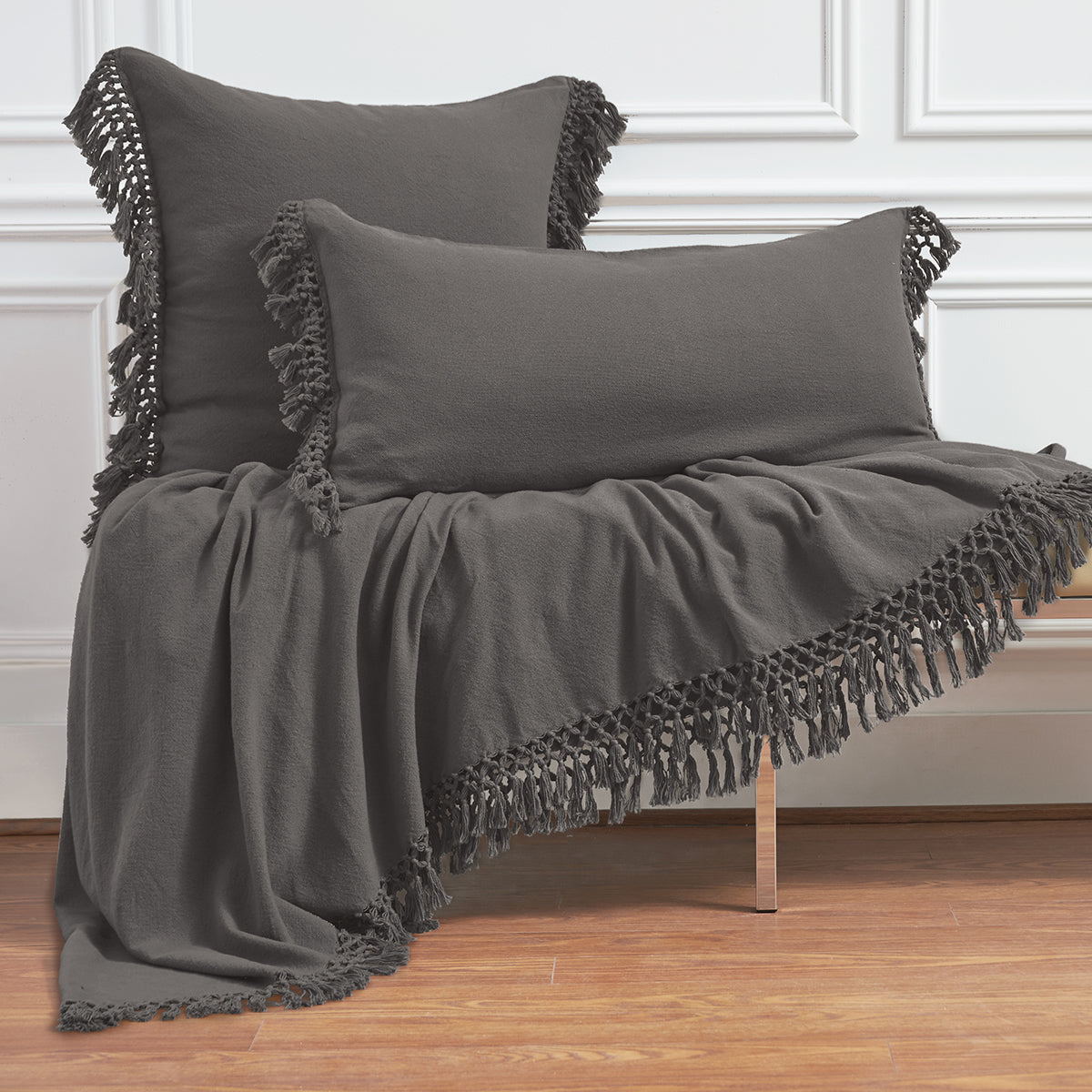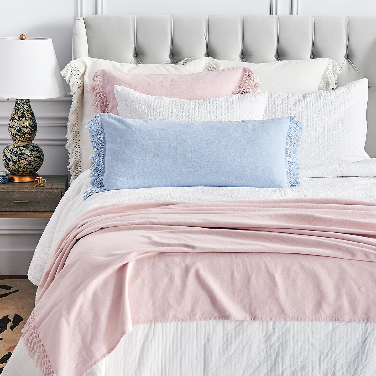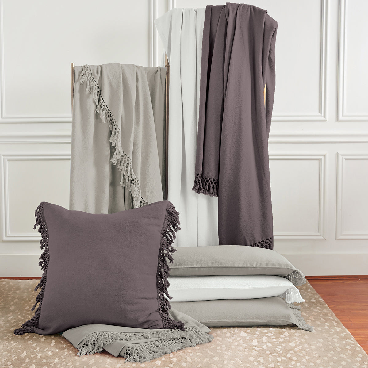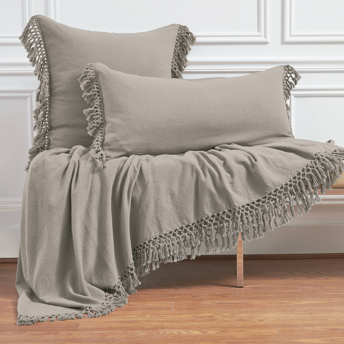Lavato, one of ELISABETH YORK's most desired collections brings serenity to your room in soft Shale. A hand-knotted triple trellis fringe showers Lavato with chic, sumptuous appeal, while an enzyme-washed finish creates subtle natural variations in each sham. With a simple yet luxurious feel, Lavato effortlessly elevates any look.