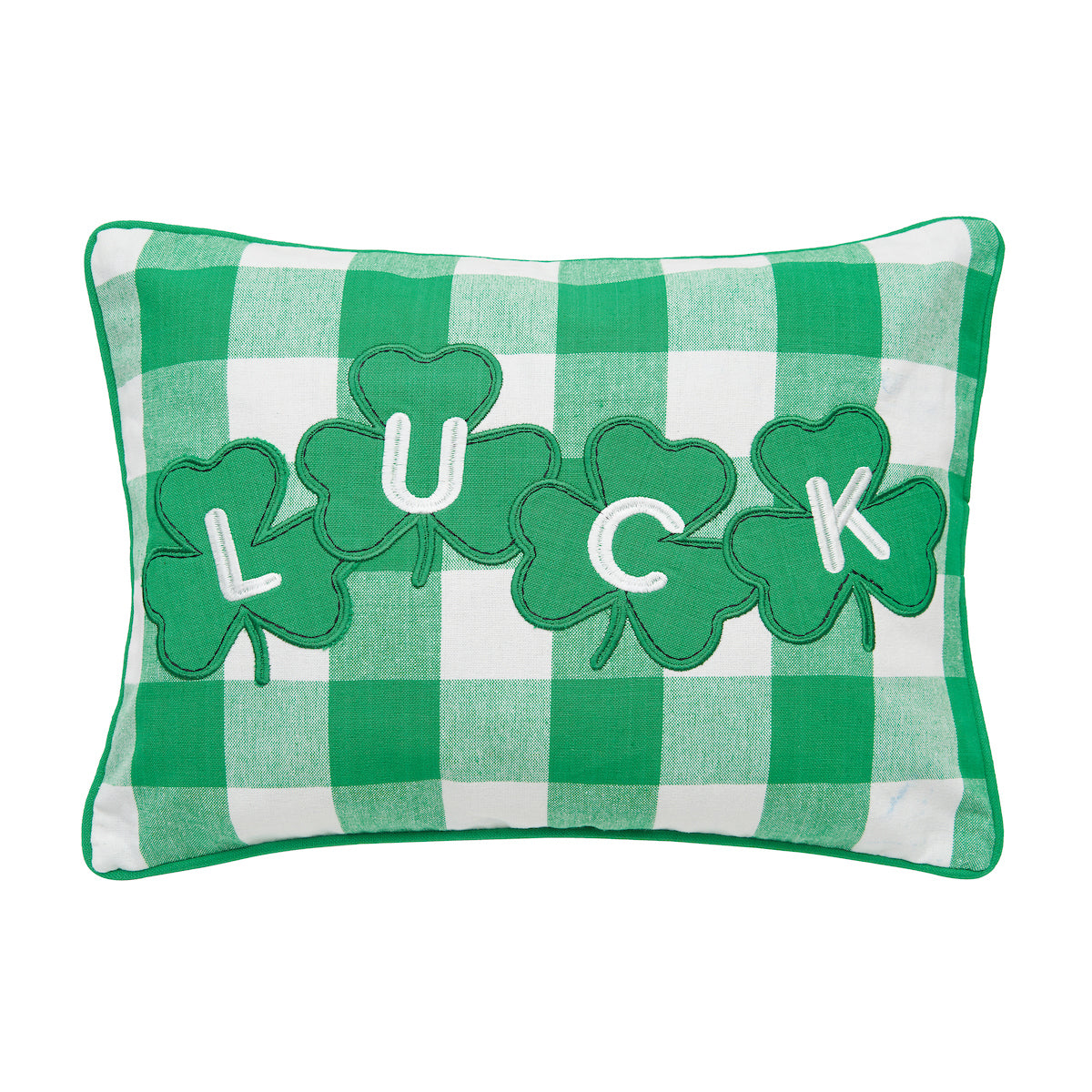 Add a touch of charm to any home with this festive woven and applique pillow! Featuring a classic green and white plaid background, it showcases the word "LUCK" appliqued in bold individual letters atop vibrant green clovers. Perfect for St. Patrick’s Day or year-round cheer, this pillow is a stylish way to celebrate your lucky side.