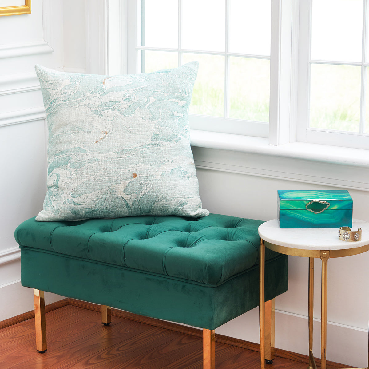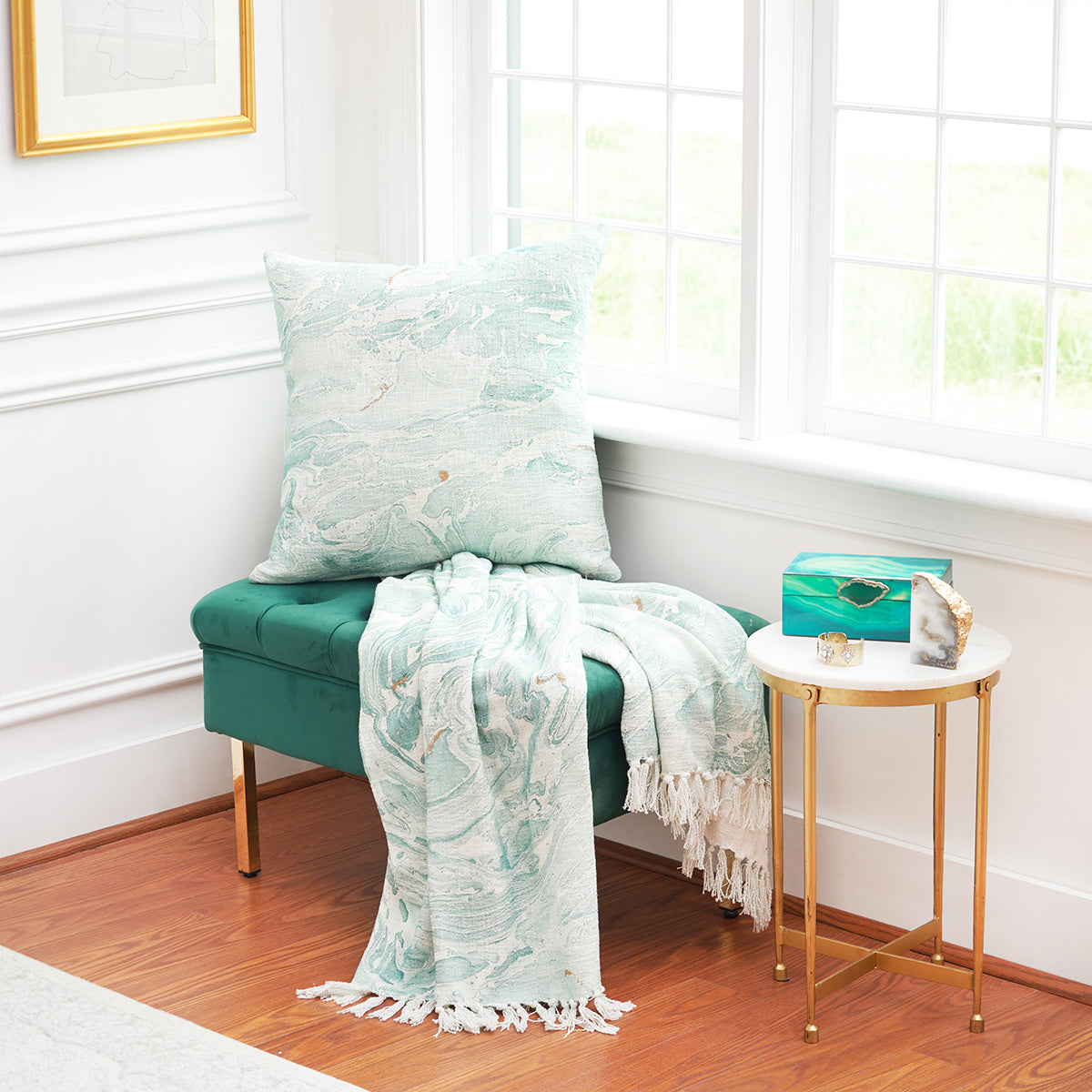 For a sense of tranquil beauty, the Marble collection exudes a luxe style by combining elegantly dyed stone patterns with rich metallic brush stroke details. Add a touch of glamour to any bedscape with this printed and hand-woven collection.
