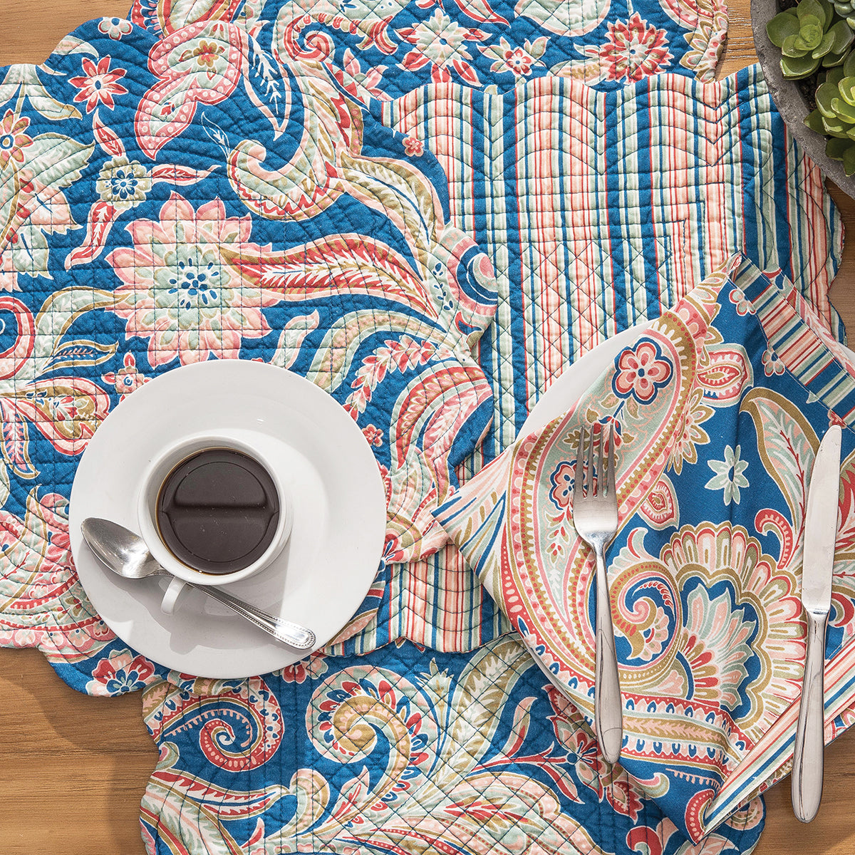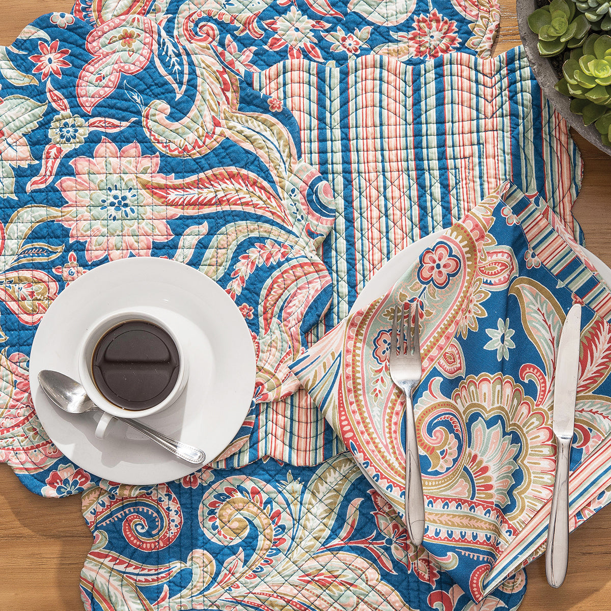 With a dynamic paisley design in vibrant colors, the Marla table linen collection effortlessly combines classic and contemporary styles. This reusable cotton napkin is easy to style for a fall or winter meal, and its reverse stripe pattern keeps the space engaging any day of the year.