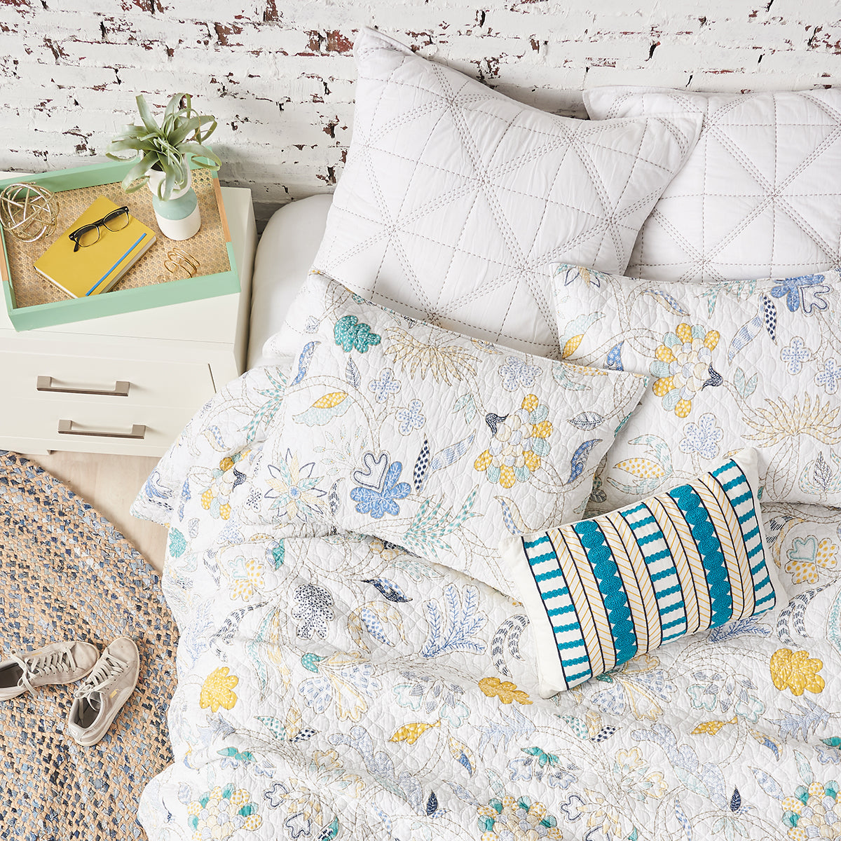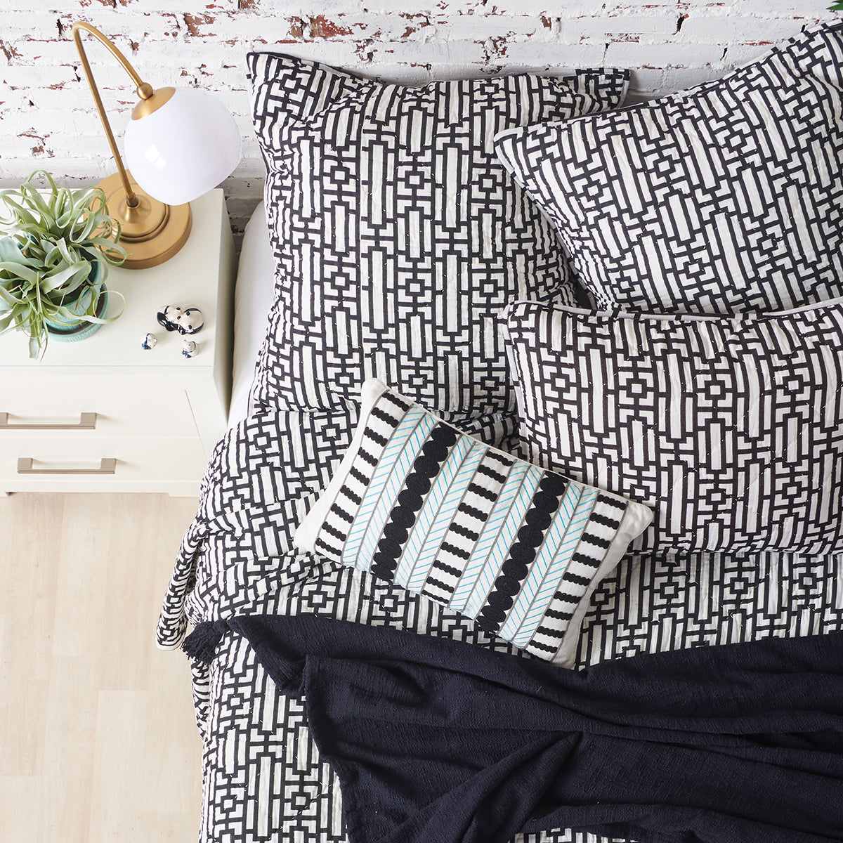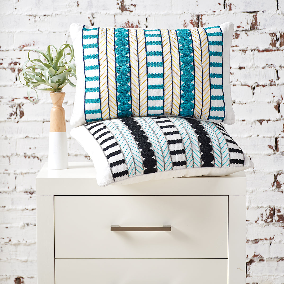 Bring summer music festival vibes to your home for year-round Coachella style. Crafted of cotton linen, the Marty pillow combines a mixture of embroidery techniques and textures packed with modern bohemian style. Available in two color options, this pillow will inspire your creativity and elevate your decor no flower crown necessary.