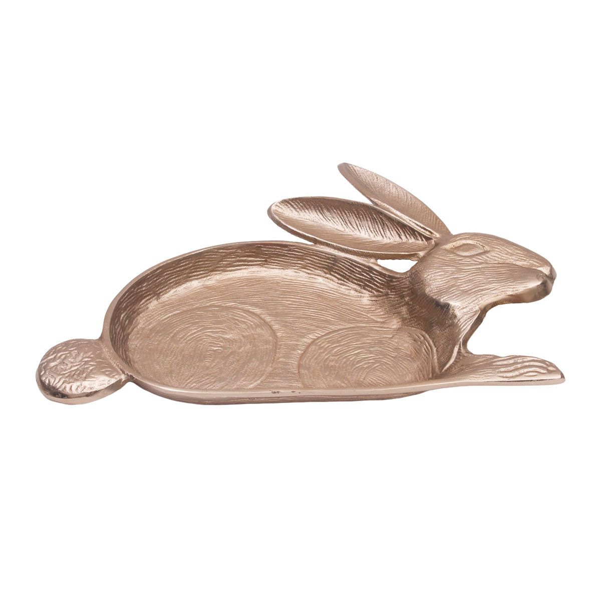 The Metal Bunny Plate is a delightful decorative piece that adds a touch of playful elegance to spring or Easter decor. Crafted in a light bronzed metal finish, this plate features a whimsical bunny-shaped design, perfect for creating a charming seasonal accent. Ideal as a standalone decorative piece or as part of a festive vignette, the intricate metalwork and soft metallic sheen bring a sophisticated touch to any display. This bunny plate brings just the right amount of cheer and whimsy to any home.