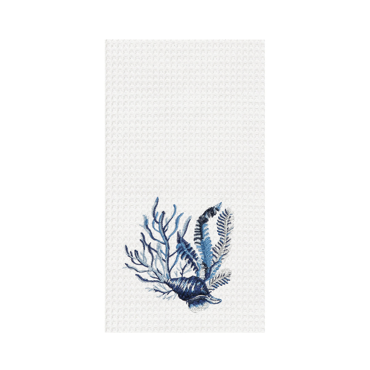 Embrace the ocean in the evening with the Midnight Lagoon Coral Embroidered Waffle Weave Towel. Get your feet wet with this coastal cotton embroidered towel that has a majestic blue ocean-at-night vibe.