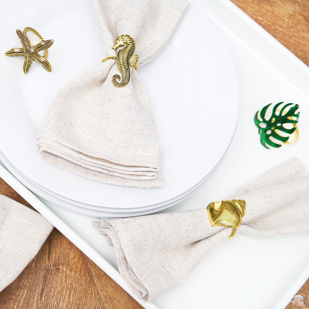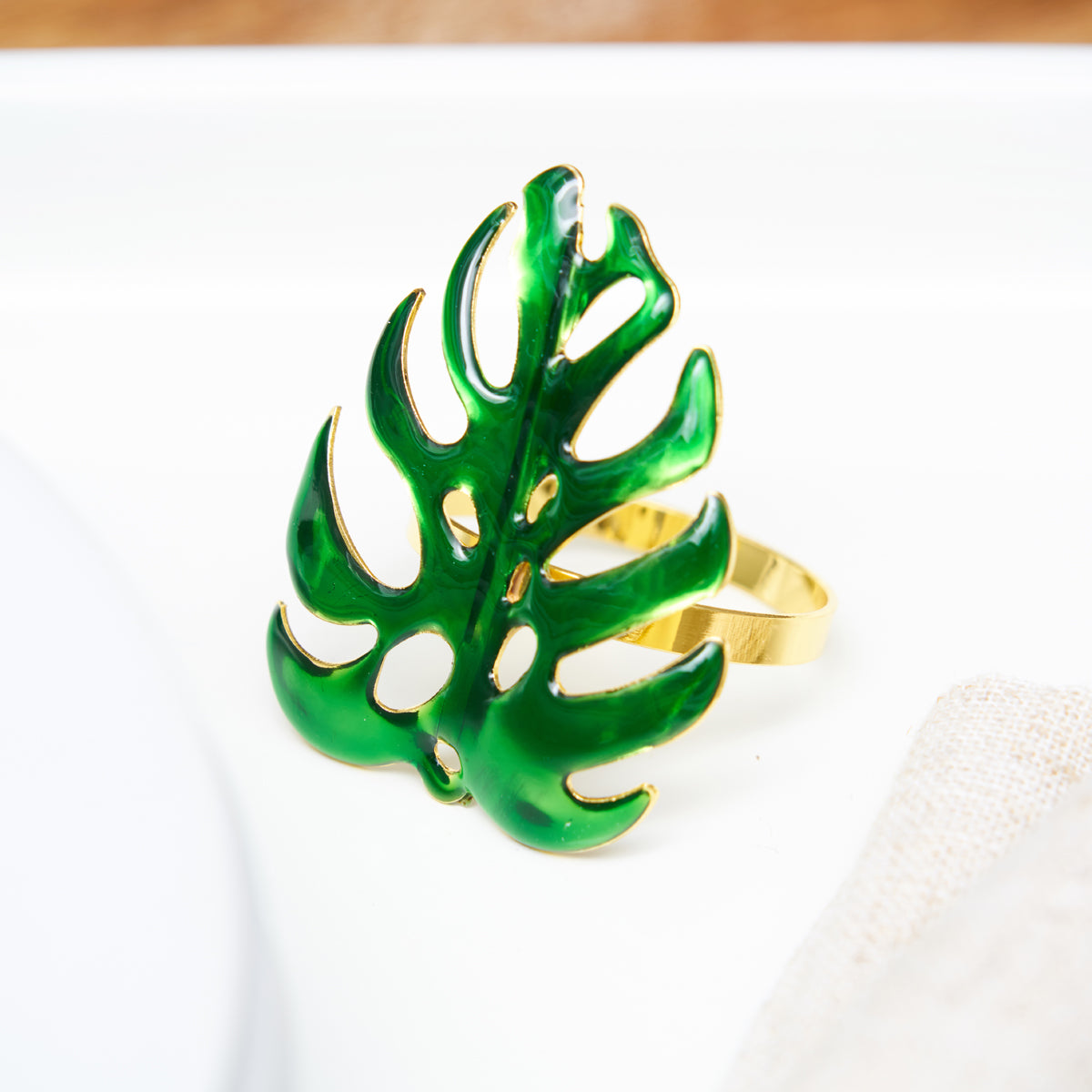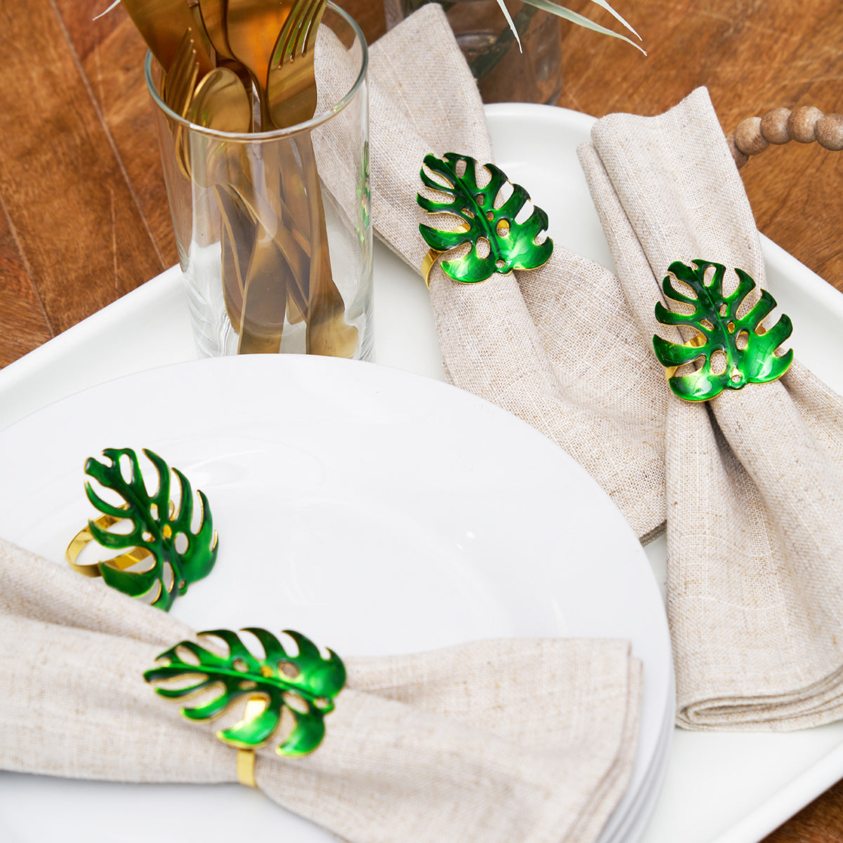 These napkin rings are designed to bring a touch of tropical paradise to your tabletop. Each ring is adorned with a beautifully detailed monstera leaf motif, evoking the tranquil ambiance of a sun-soaked island getaway. Whether you're hosting a summer soiree or simply enjoying a meal with loved ones, these napkin rings elevate the dining experience with their coastal charm.