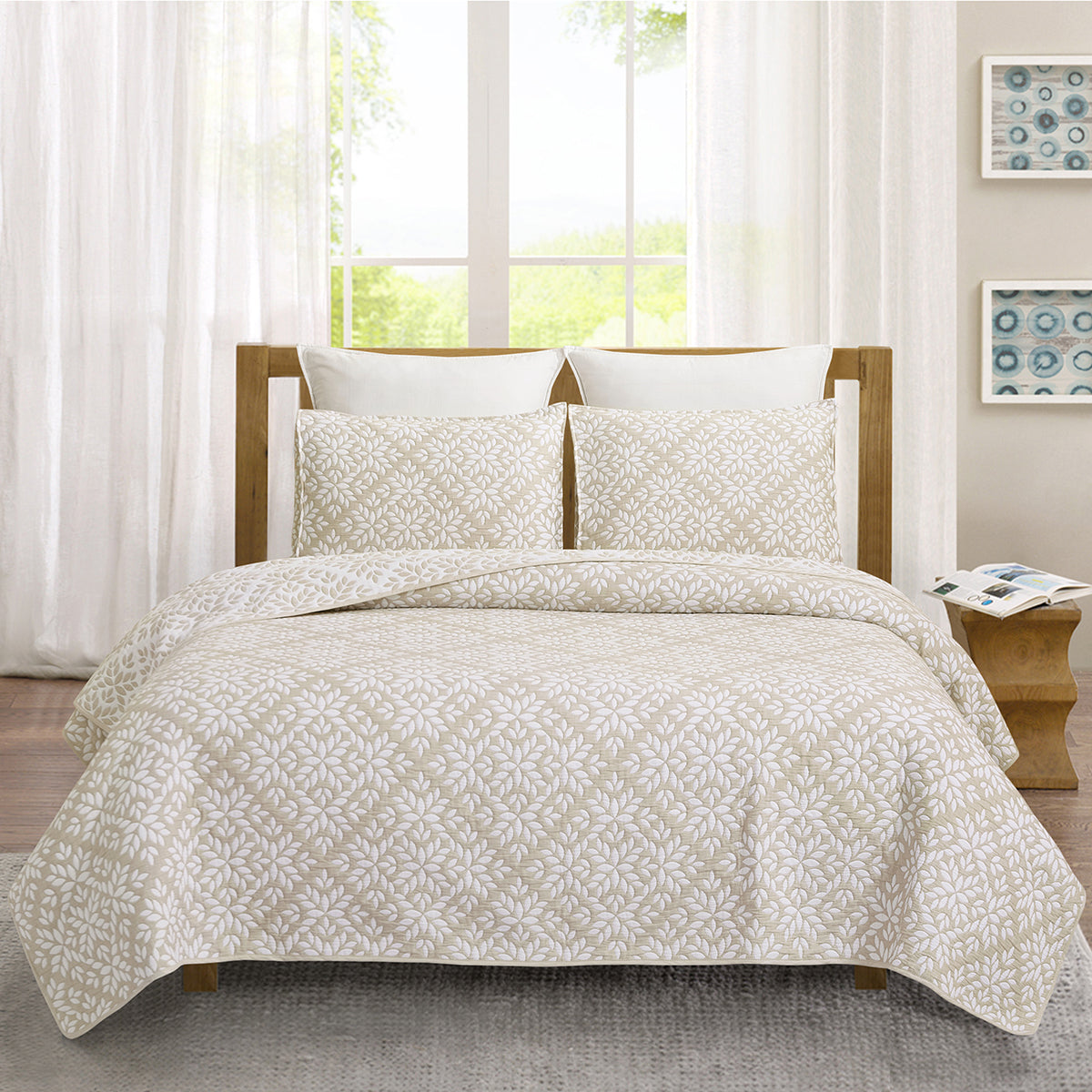 Introducing the Natural Leaves Jacquard Coverlet Set. With a beautiful leaf design in a diamond pattern on a modern neutral background, this coverlet set adds a touch of elegance to your everyday bedding. Plus, it is reversible for even more styling options.