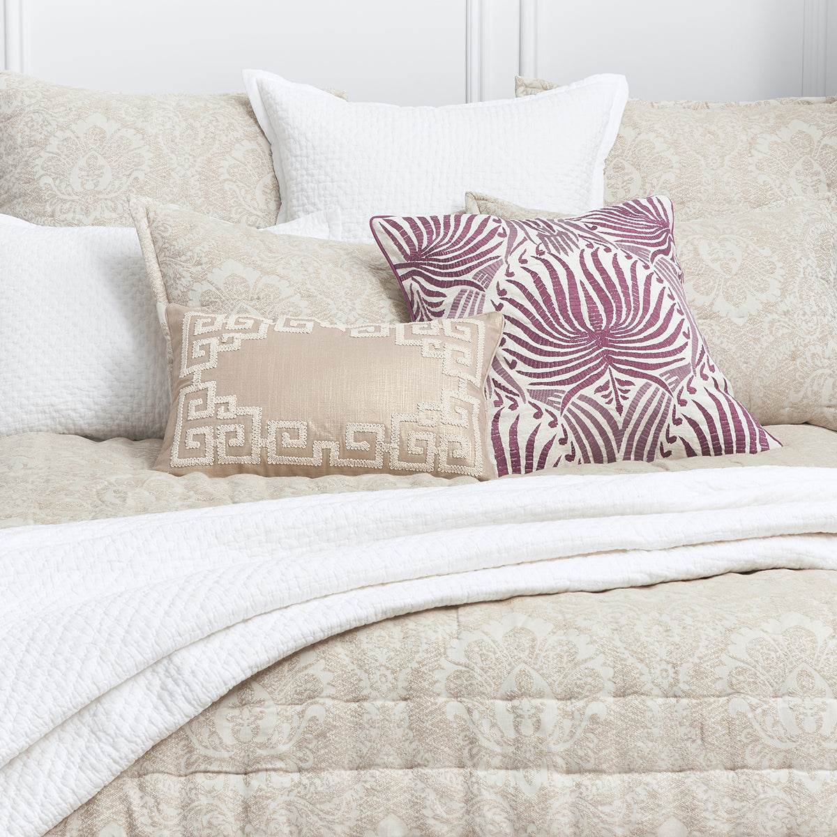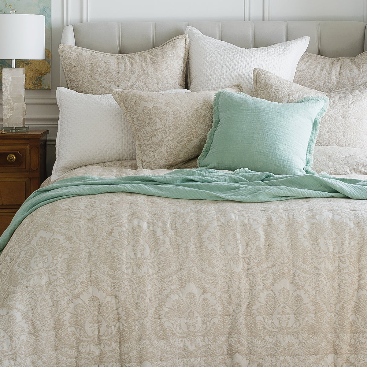 The Navar shams neutral woven damask pattern sweeps you off your feet and into a world of tranquil elegance. Accompanied by the rest of the Navar collection or layered with a variety of texture and color, sleep sweetly surrounded by your favorite ELISABETH YORK pieces. Each sham is designed with quality materials and skillfully crafted by hand. Due to the artisan techniques and specialized processed used to create each piece, color and texture may vary slightly for a one of a kind look.