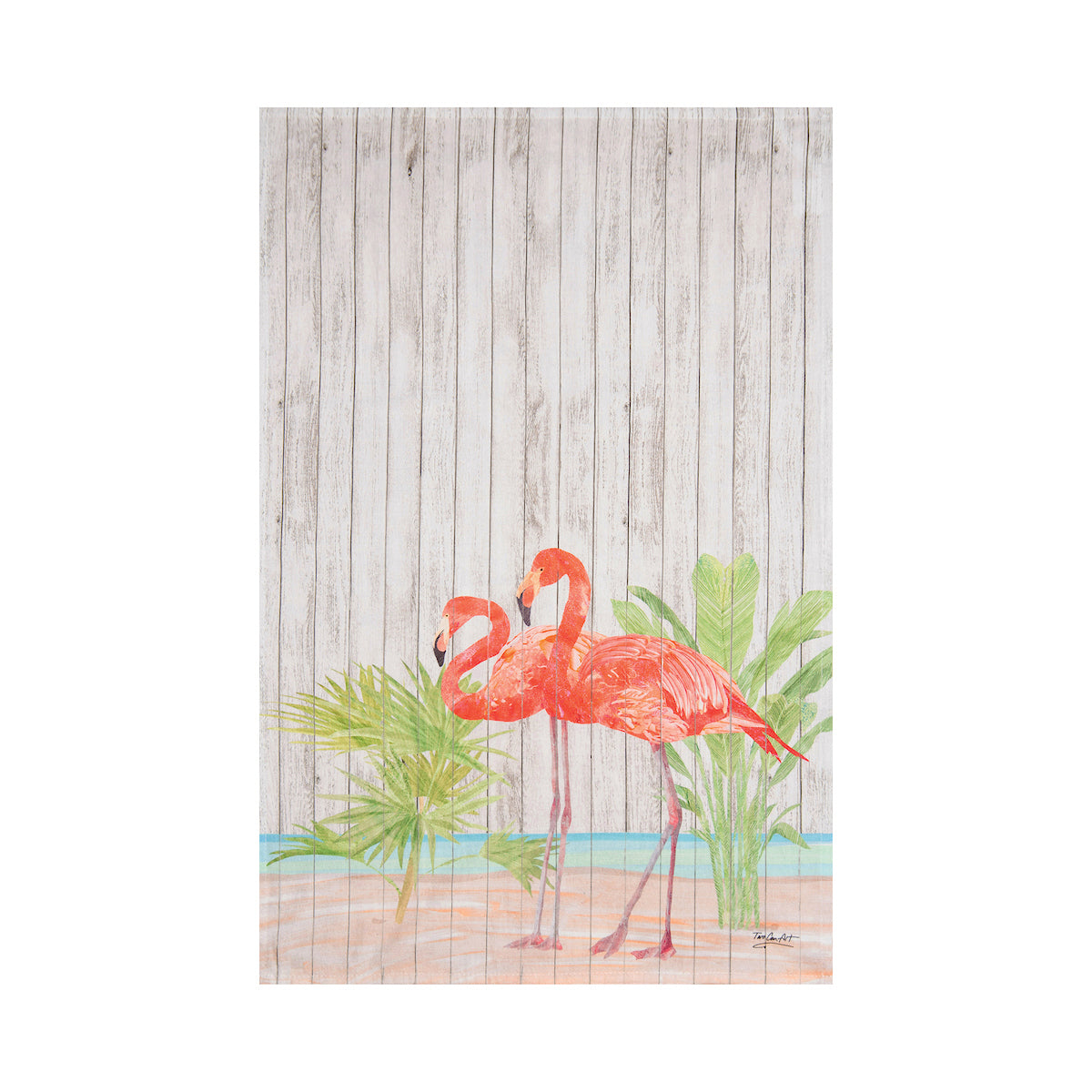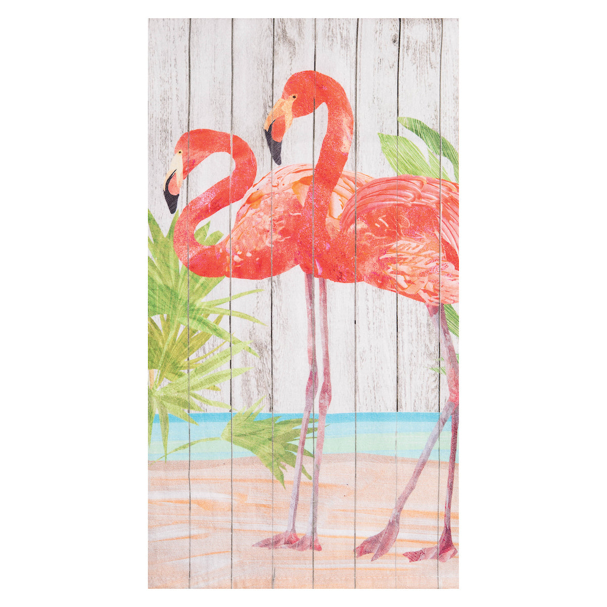 The Paradise Flamingo Kitchen Towel features artwork by mother and son duo: Two Can Art. This 100% cotton flour sack towel is machine washable, making it easy to care for during everyday use!
