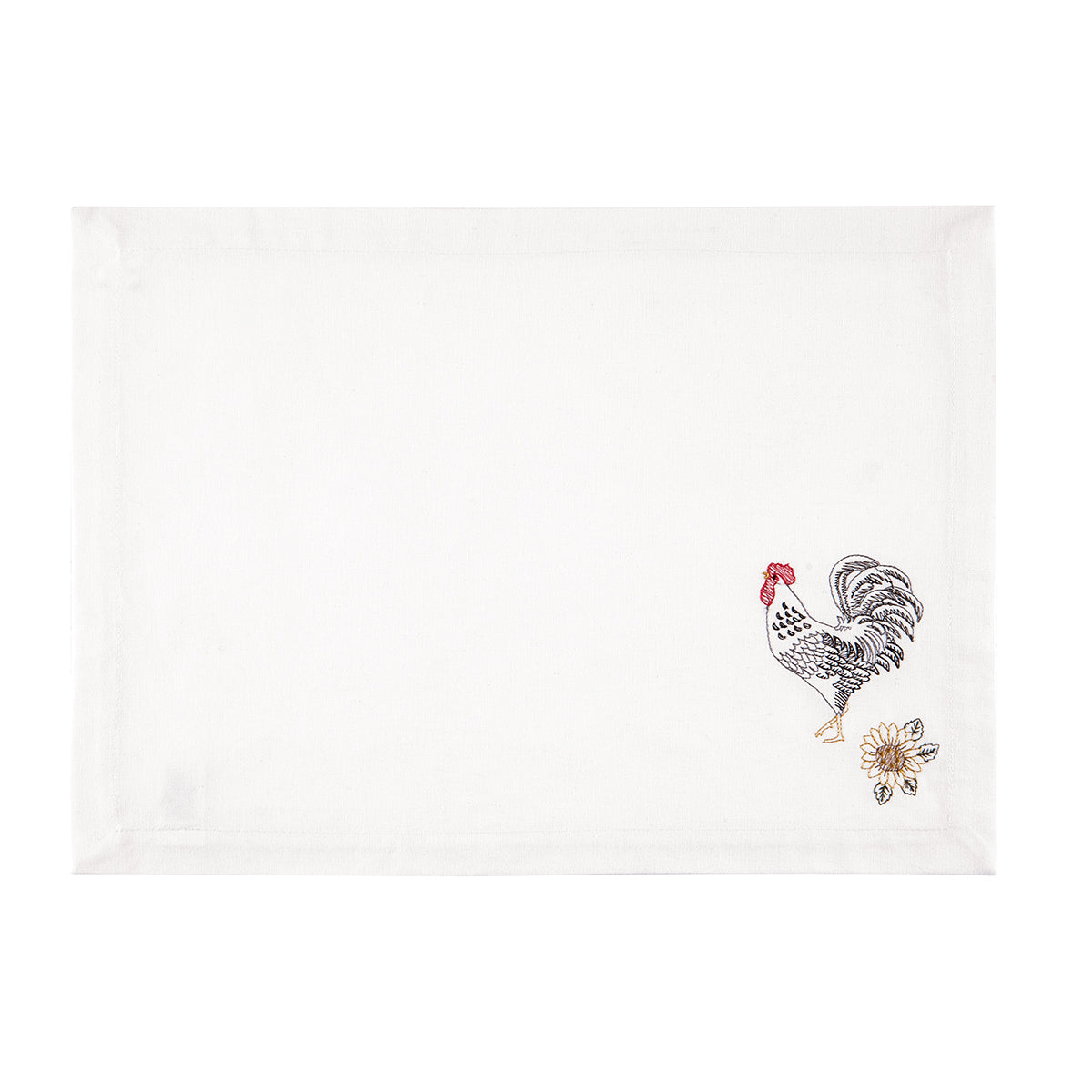 Enhance your French country or farm house decor with the Parisian Rooster with this beautiful handcrafted embroidered table runner. This table runner features a distinguished looking rooster, designed to complement your country or farm decor. Features Crafted of 100% Cotton Machine Washable for Easy Care Size: 14 Inches High x 51 Inches Long Coordinating Placemats Sold Separately