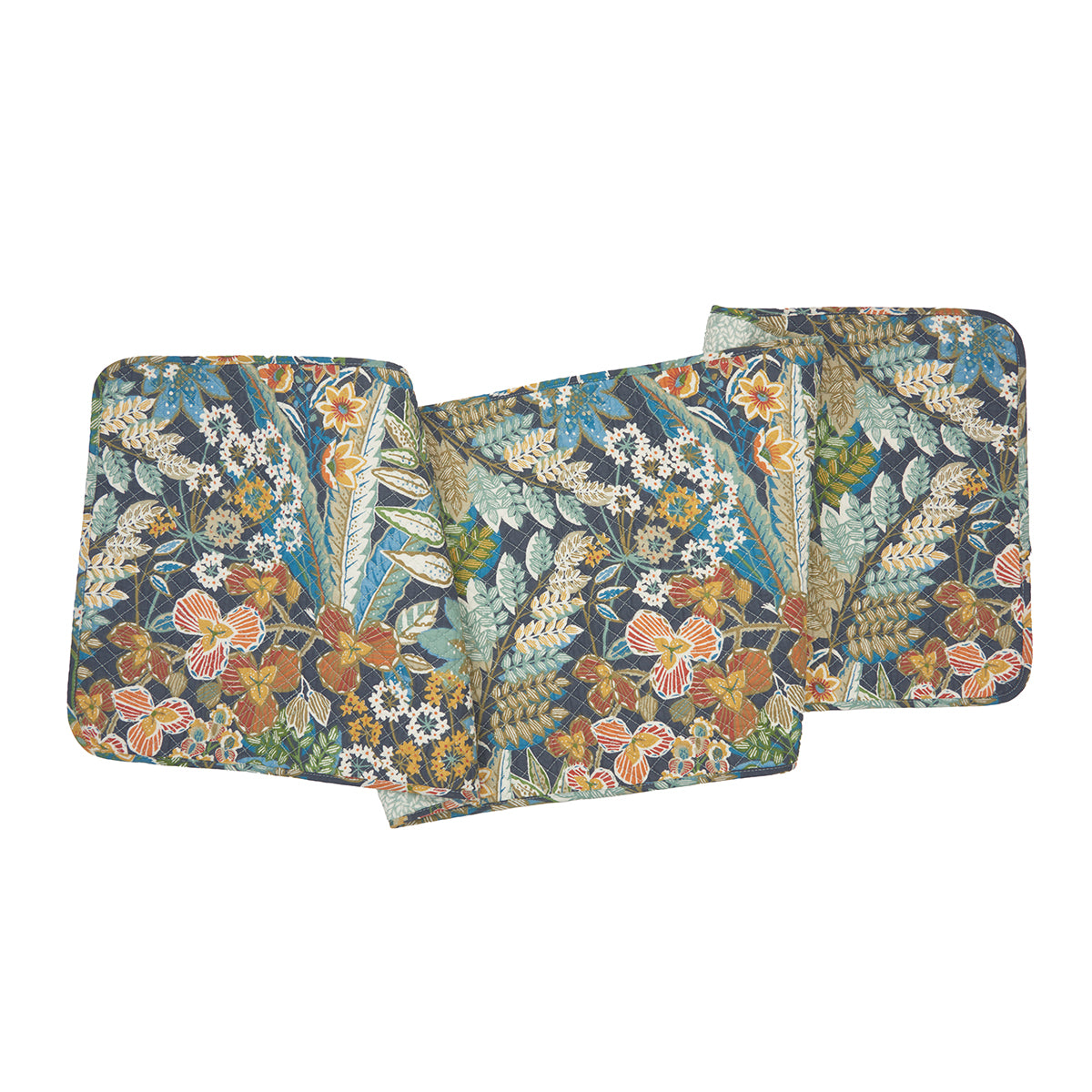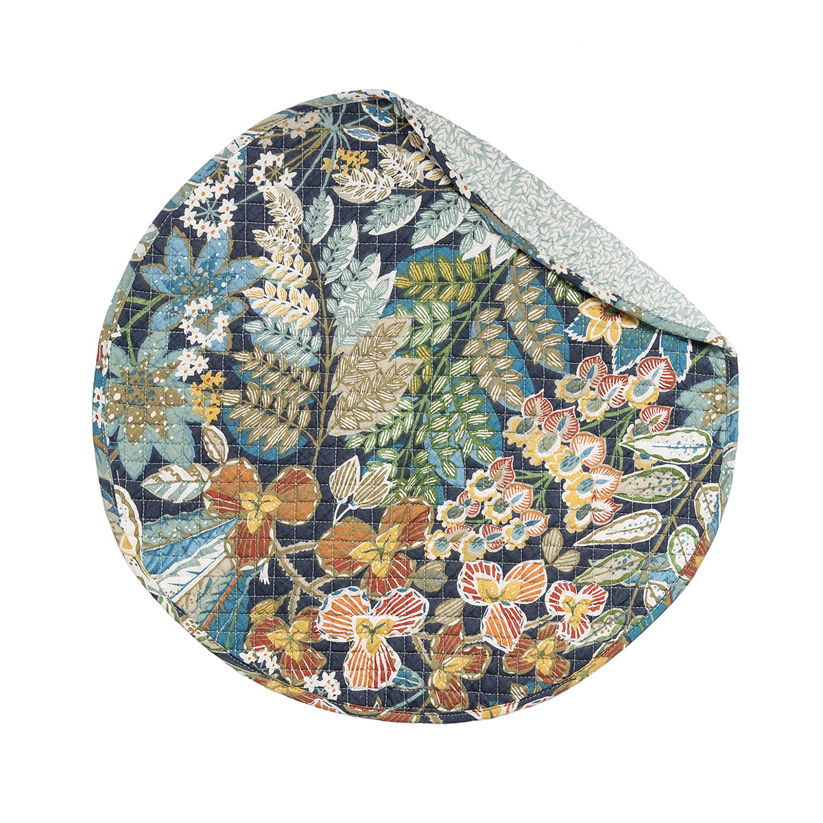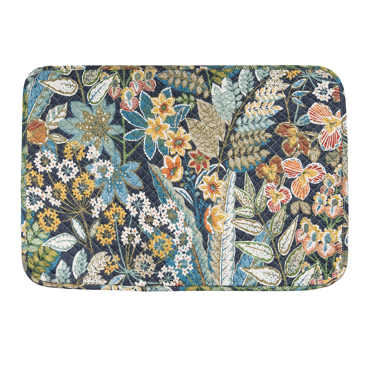 Posy table linens feature a charming array of artistically depicted flowers set against a rich indigo backdrop, evoking a picturesque meadow. Radiant dandelion yellow, modern melon orange, and lush succulent green harmonize with the complementary hues in this print to imbue a timeless allure, perfect for year-round tabletop decoration. Flip it over to reveal a soothing soft green ditsy botanical print, offering even more styling possibilities.