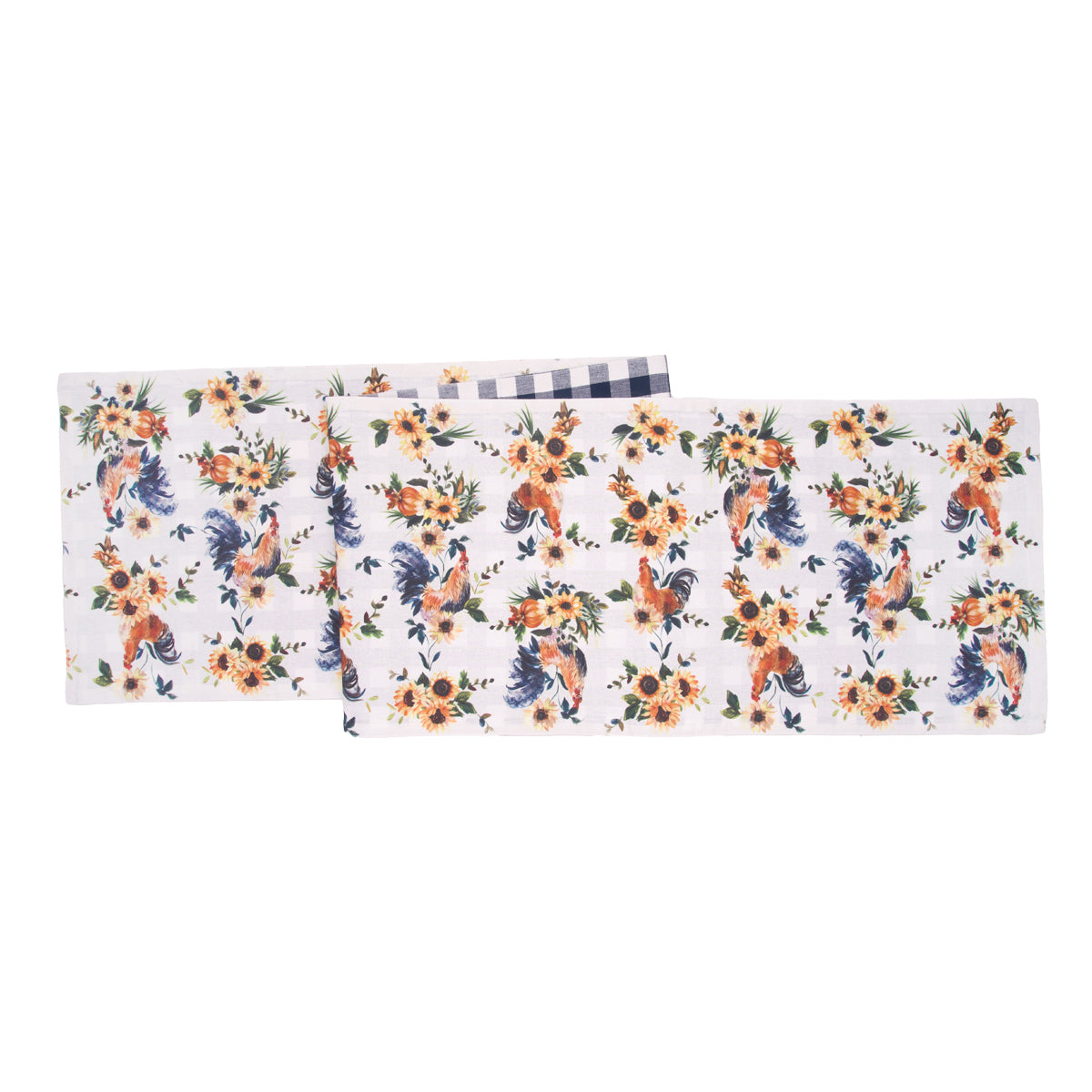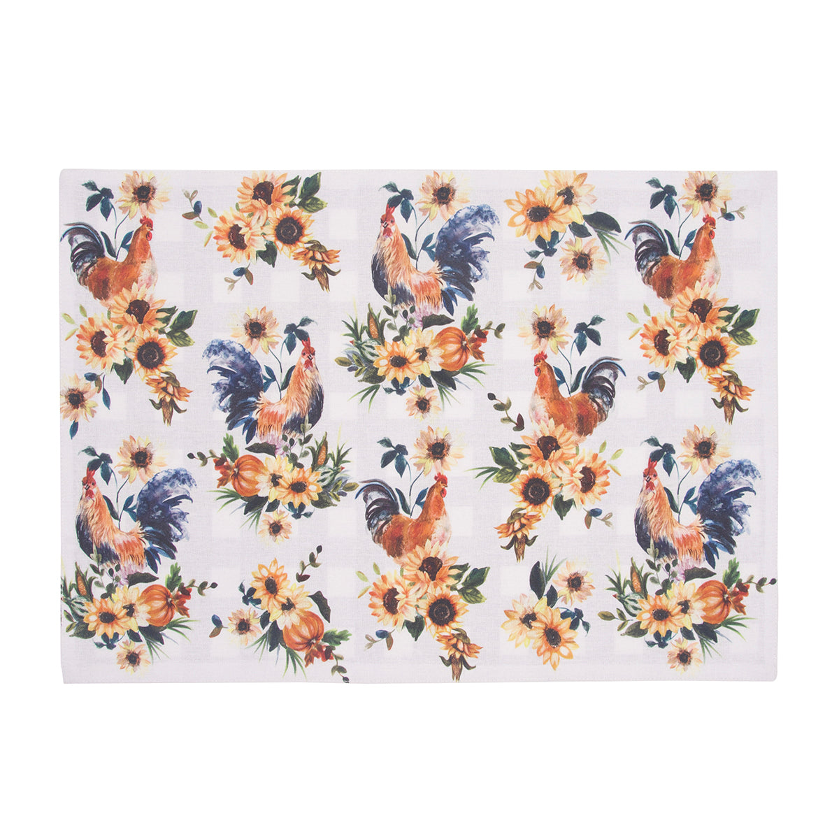 The Rooster Farmhouse printed table linen collection brings rustic charm and timeless farmhouse style to any dining space. Featuring an all-over pattern of beautifully illustrated roosters surrounded by vibrant sunflowers, it adds a warm, countryside feeling to summer gatherings and everyday experiences. The reverse side shows a classic navy and white gingham woven pattern, perfect for achieving a traditional farmhouse look. Combining decorative flair with practicality, these linens are a delightful addition to any kitchen, infusing it with cozy, farmhouse-inspired charm.