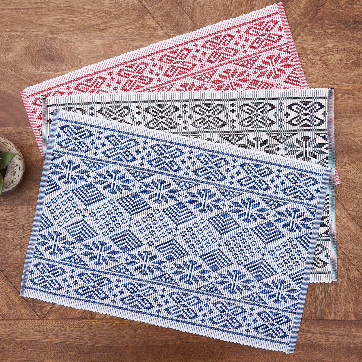 Bring a unique look to your tabletop with the Scandinavian Jacquard Placemats. With an intricate blue and white Scandinavian design, this jacquard woven placemat provides a year-round accent and worldly appeal.