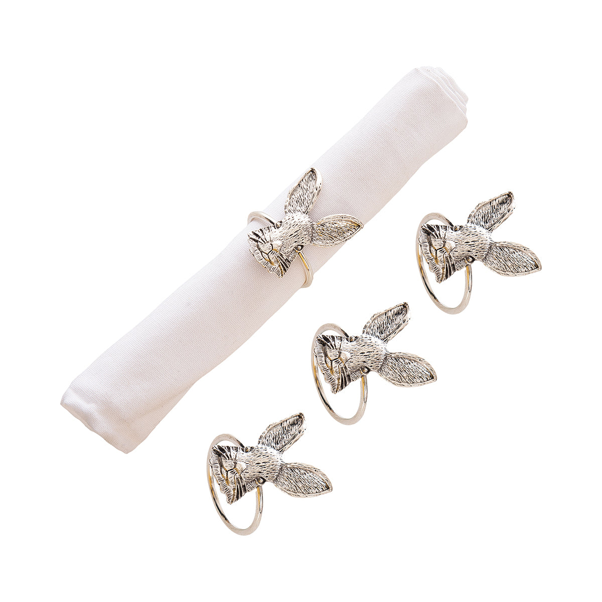 Elevate table decor with this napkin ring set, crafted from 100% zinc alloy and featuring a playful rabbit head charm. Ideal for Easter or spring occasions, the fun design will complement any tabletop aesthetic.