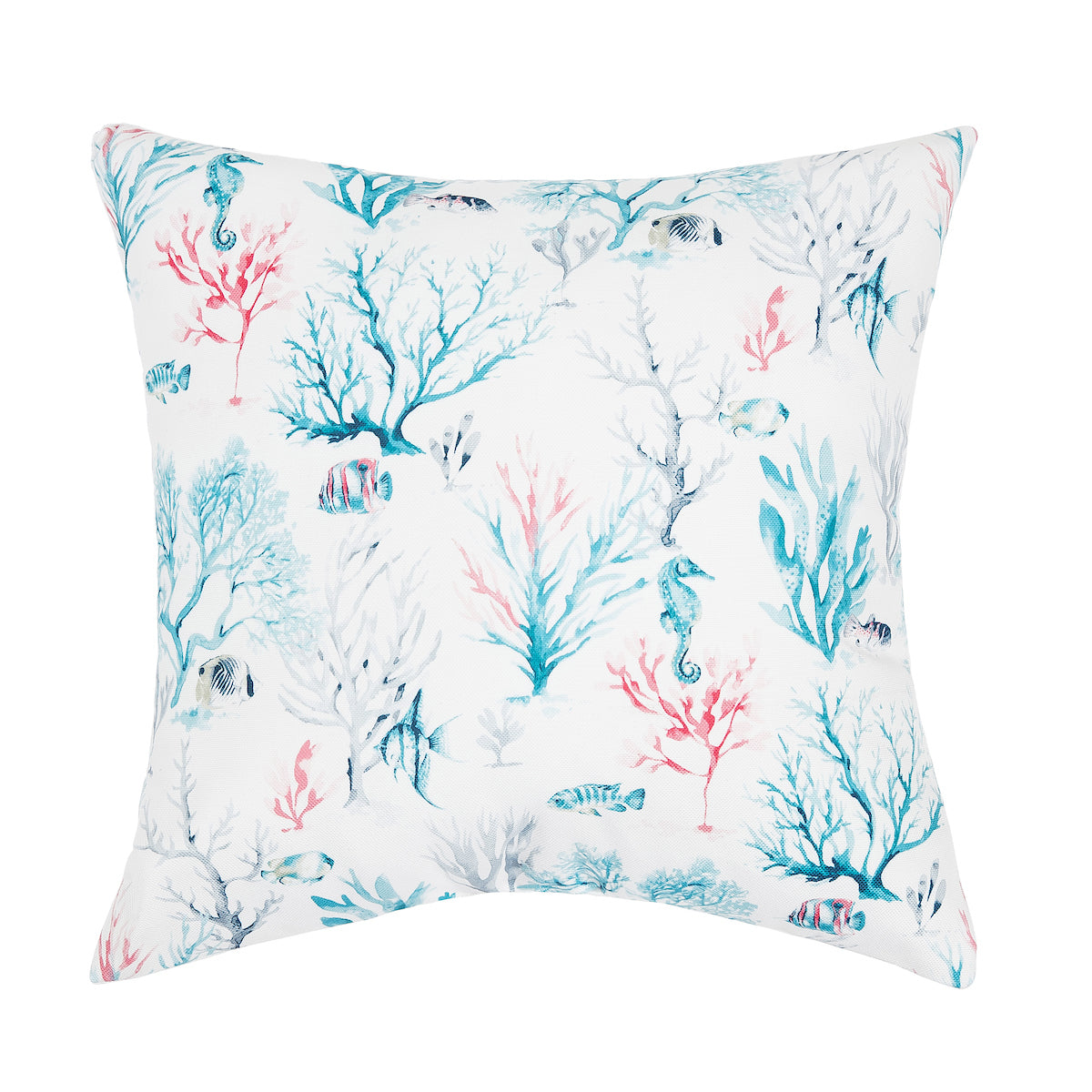 Immerse yourself in the soft, watercolor-inspired ocean scene adorning the St. Vincent Pillow. Delicate corals, graceful seahorses, and charming fish come to life, creating a tranquil ambiance that transcends from your interior spaces to the great outdoors. This digitally printed pillow is fade and mildew resistance made from a soft woven polyester cover and plush polyfill, ensuring not just comfort but also quick drying.