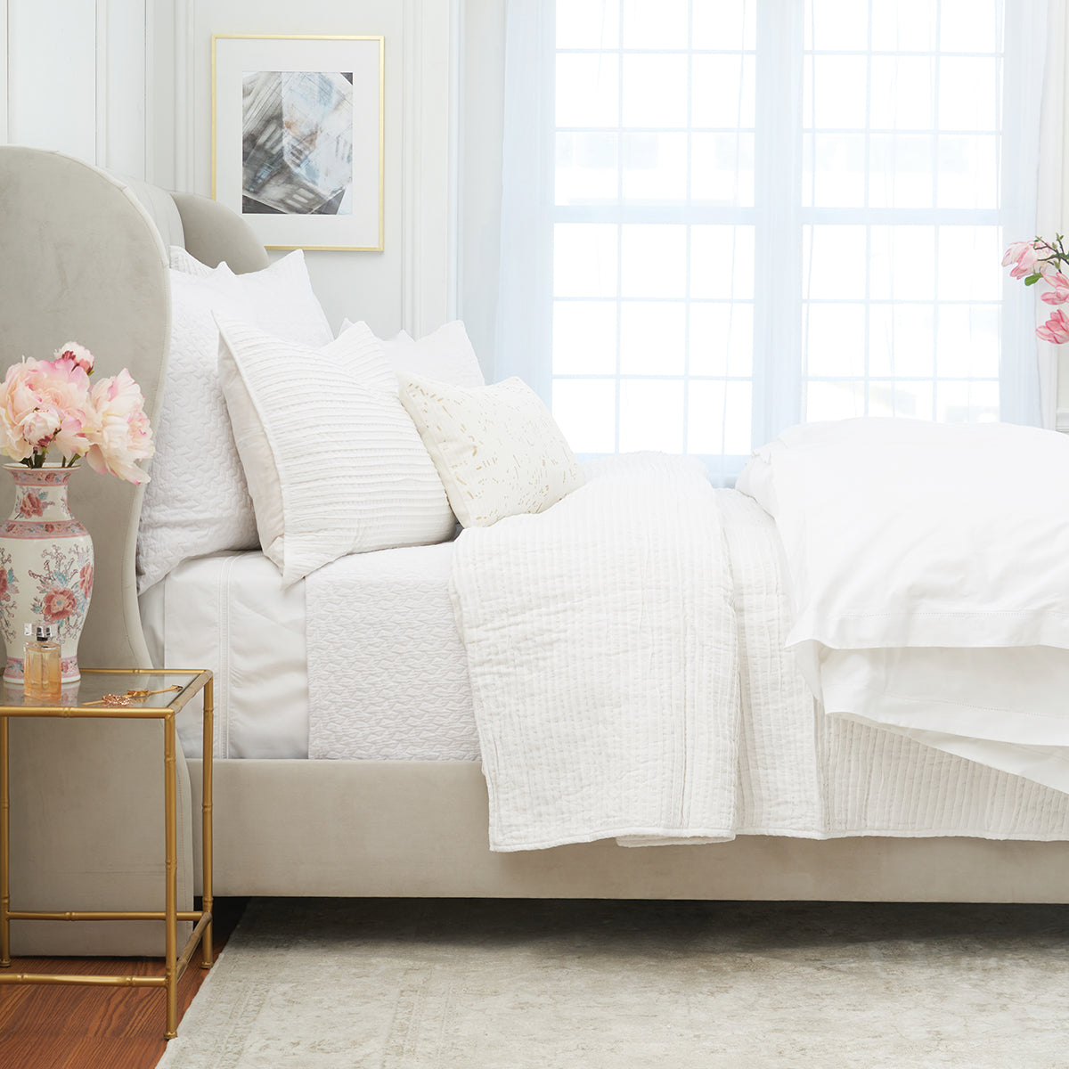 Tess lays the foundation for a posh yet practical arrangement of textures. This sham is tailored with woven pleats reminiscent of a perfectly pressed tuxedo shirt that give your bed a refined, formal look that can be dressed for a grand affair, or for everyday comfort and relaxation. A 100% cotton voile back and hand-stitched quilting provide a subtle contrast to layers of petite pleats and celebrate a harmony of textures that is just waiting to be paired with your favorite bedding.
