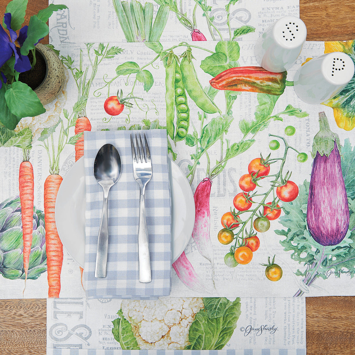 Bring fresh vegetables to your table in more ways than one with the Vegetable Garden Hardboard Placemat. Featuring artwork by Jane Shasky, this placement can effortlessly bring everyday charm or a seasonal spring look to your dining table.