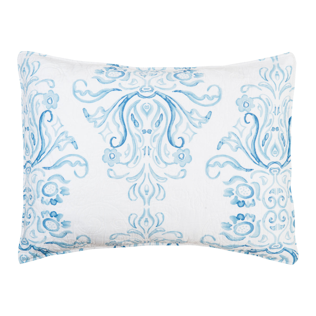 Veranda?s print pattern is taken from hand painted watercolor medallions and coordinates with a Tattersall plaid.