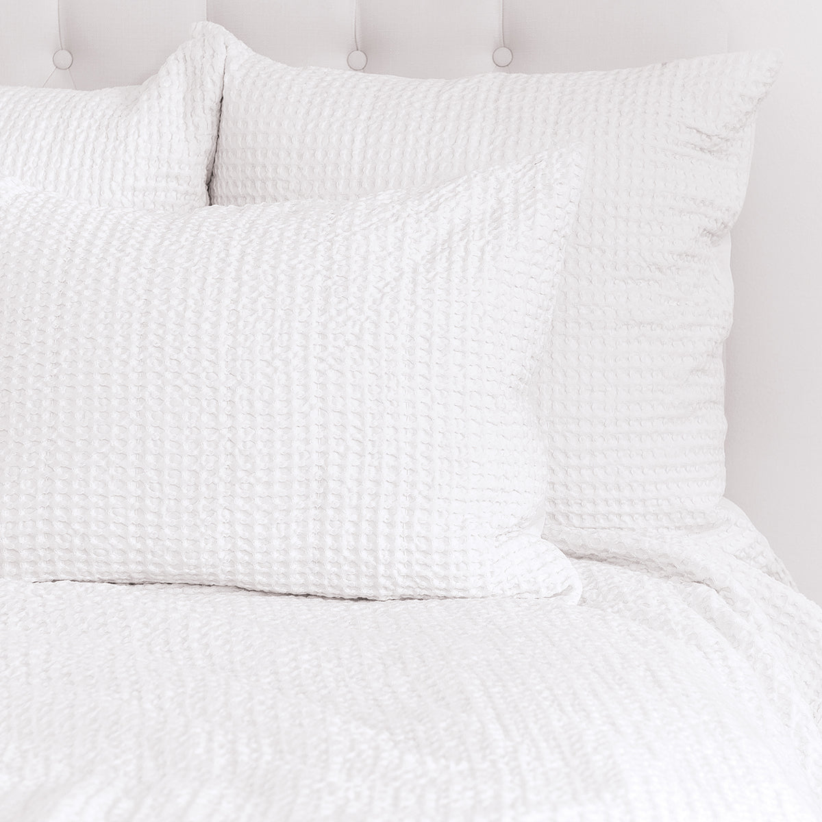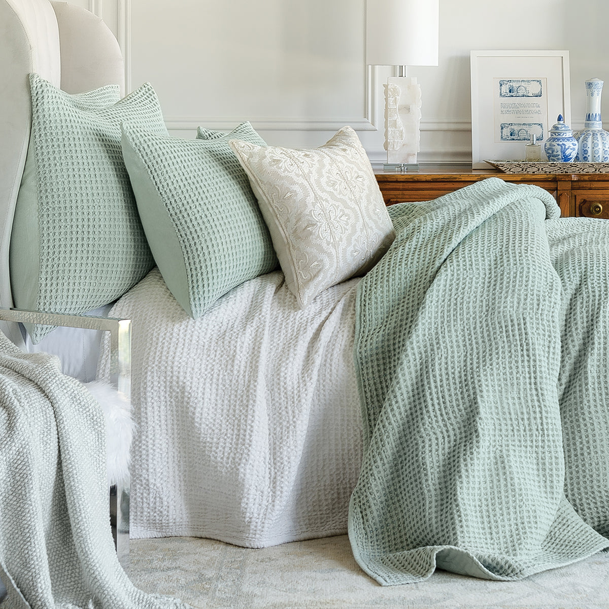 Transform your bed with the timeless pattern and texture the waffle weave. The Waffle Coverlet is woven of 100% cotton, then stonewashed and acid-washed to give it an amazing hand with indulgent softness. With a versatile colorway that provides elegance on its own, but also welcomes layering, this bedding is your new go-to staple for elevated comfort and style.