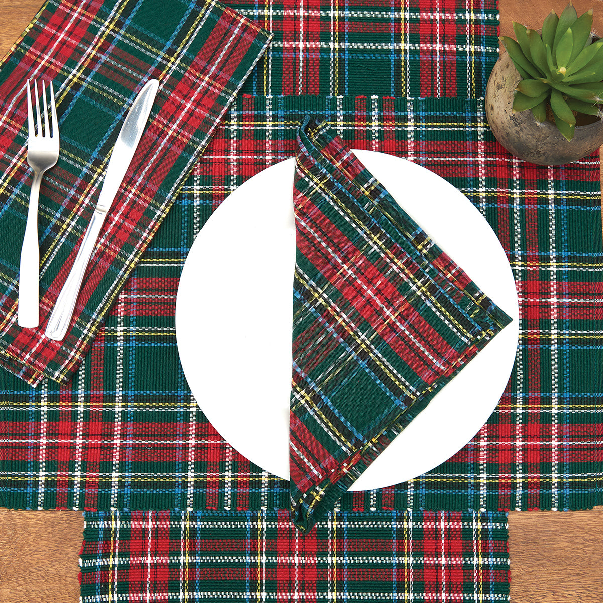 Plaid tidings to all with the rich jewel tones of Weston Plaid tabletop collection. Festive hues of red, green, white, yellow and blue are woven into a traditional plaid, bringing cheerful holiday coziness to your home. Weston Plaid is perfect for any fall gathering and versatile enough for your every day meals. This collection is crafted of 100% cotton and machine washable for easy care. Complete the look with the napkins and table runner or mix and match with your favorite solids for your unique style. Love this look? Weston Plaid is also available in a window valance, accent pillow and throw.